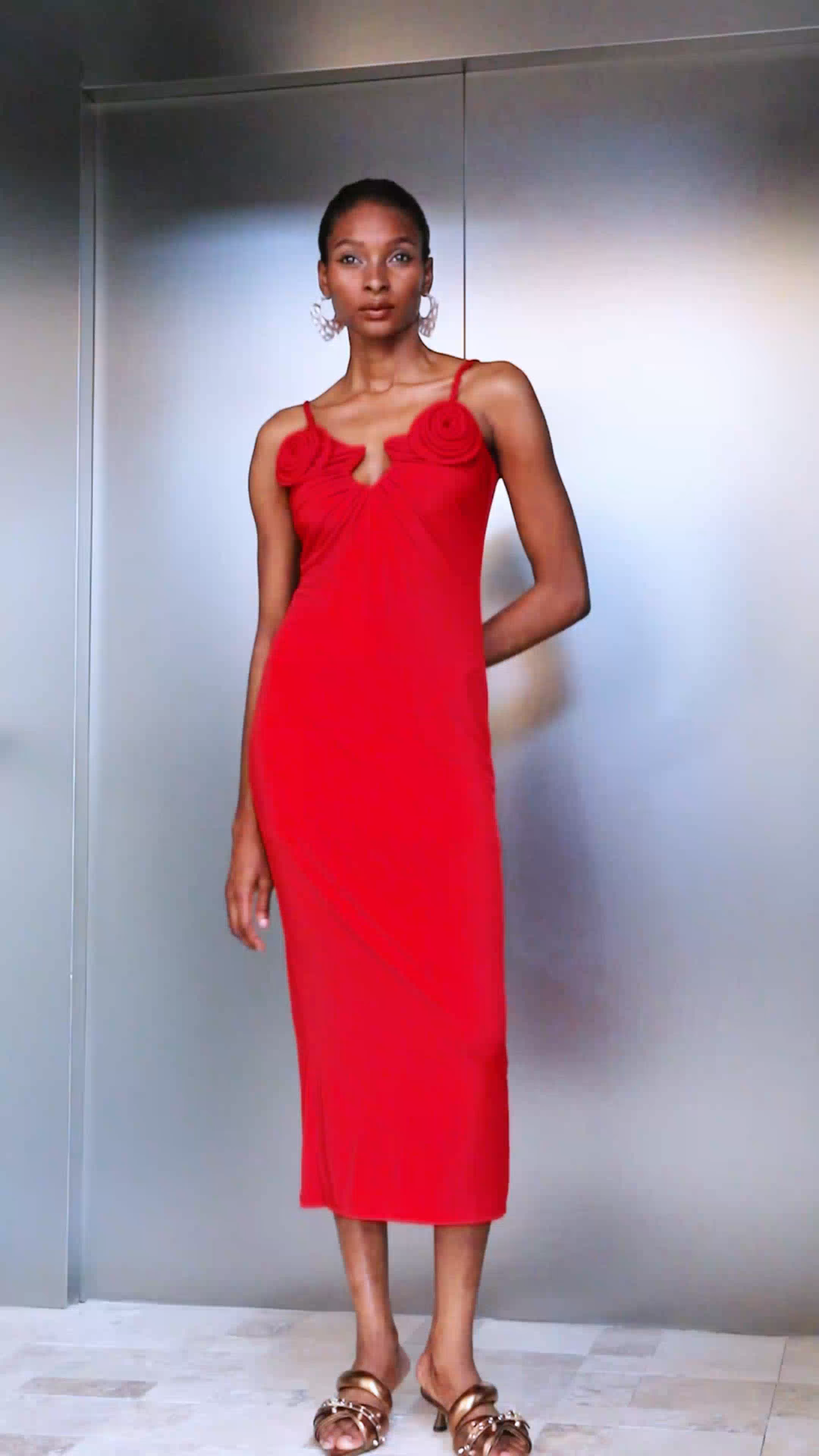 Catherina Flower Spaghetti Midi Dress