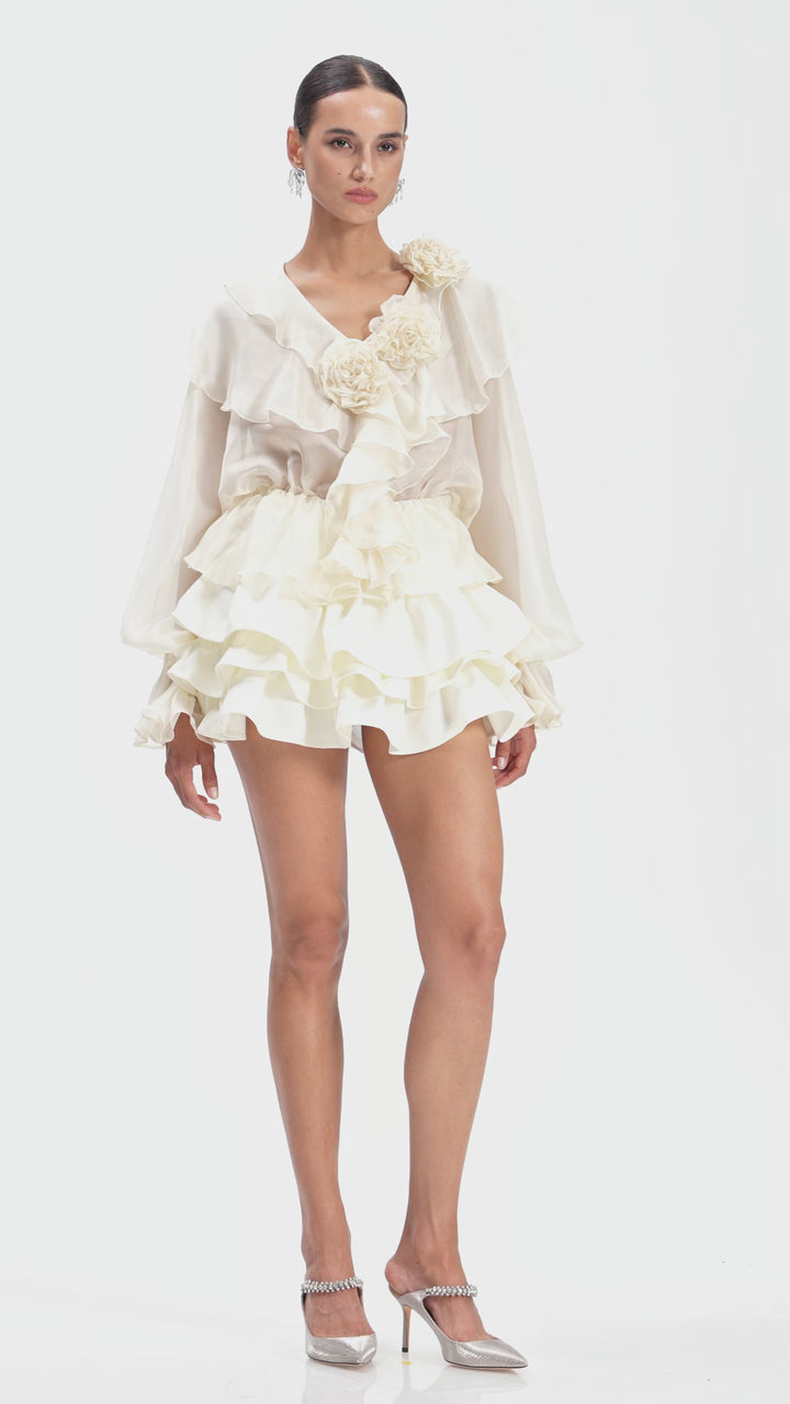 Claudine Flower Ruffle Skirt Set