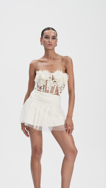 The Claus Flower Corset Mesh Skirt Set combines intricate floral design with a modern silhouette. The corset offers structured support and shape, enhancing the natural figure, while the mesh skirt provides a light, breathable layer with subtle transparency for a fashionable edge. Ideal for those seeking a blend of elegance and contemporary style in one coordinated outfit.