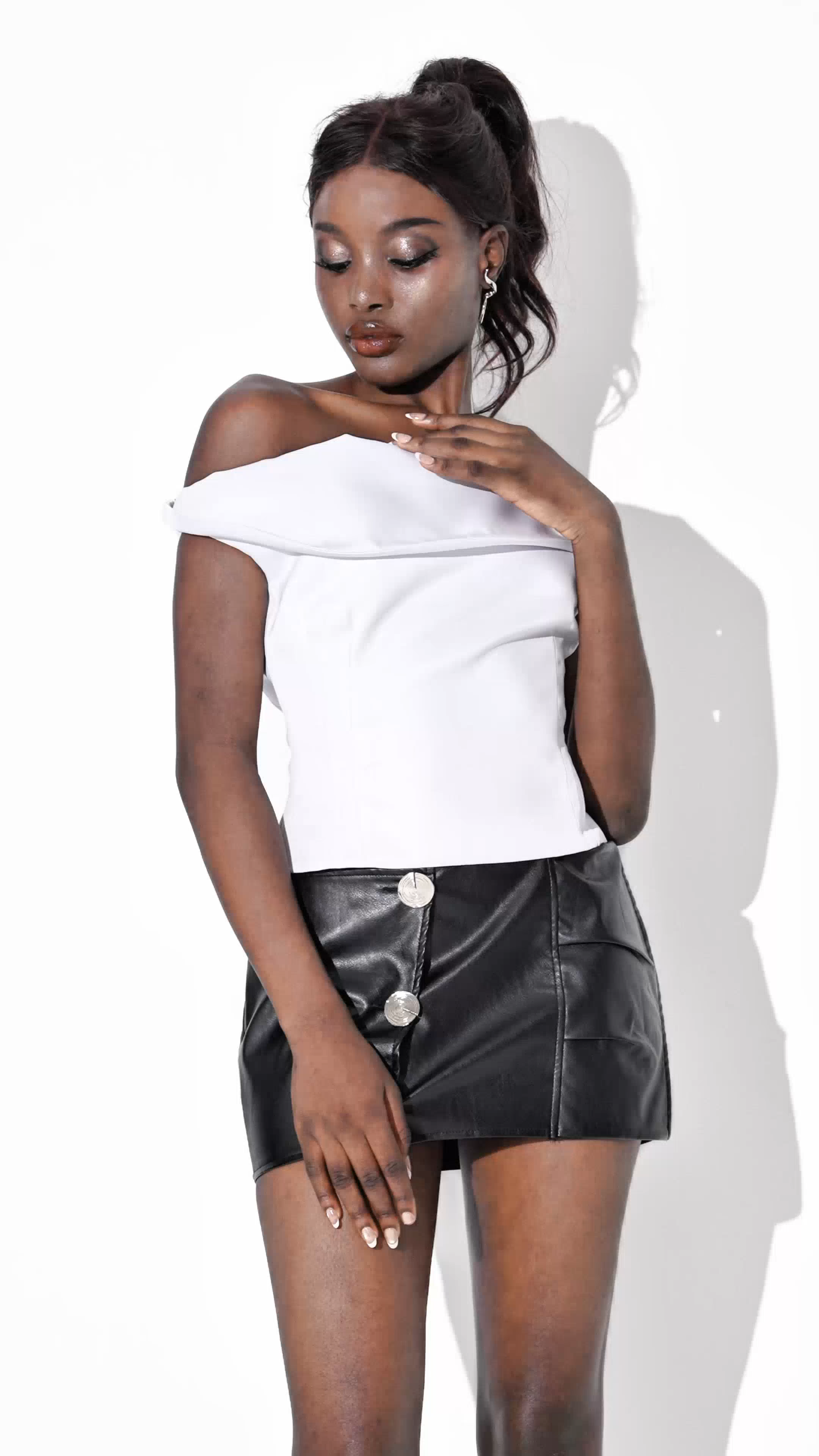 The Crina Asymmetric Off Shoulder Top in White offers a sophisticated, modern silhouette with its unique asymmetric neckline. Crafted to flatter the shoulders while providing a chic, elegant look, this top pairs effortlessly with tailored trousers or skirts for refined day-to-night styling. Its clean white fabric enhances versatility, making it an essential piece for a polished wardrobe. Designed with attention to detail, the Crina top combines contemporary fashion with timeless appeal, ideal for those seeking a standout yet versatile garment.
