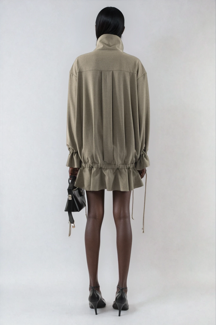 The Don Funnel Neck Ruffle Mini Dress combines architectural elegance with contemporary flair. Its distinctive funnel neckline creates a refined silhouette, while delicate ruffles add movement and visual interest throughout. Cut to a flattering mini length, this piece transitions seamlessly from day to evening occasions. The structured neckline frames the face beautifully, making it an ideal choice for those seeking a statement piece that balances sophistication with modern design sensibility. Perfect for elevating your wardrobe with a dress that commands attention through thoughtful construction and detail.