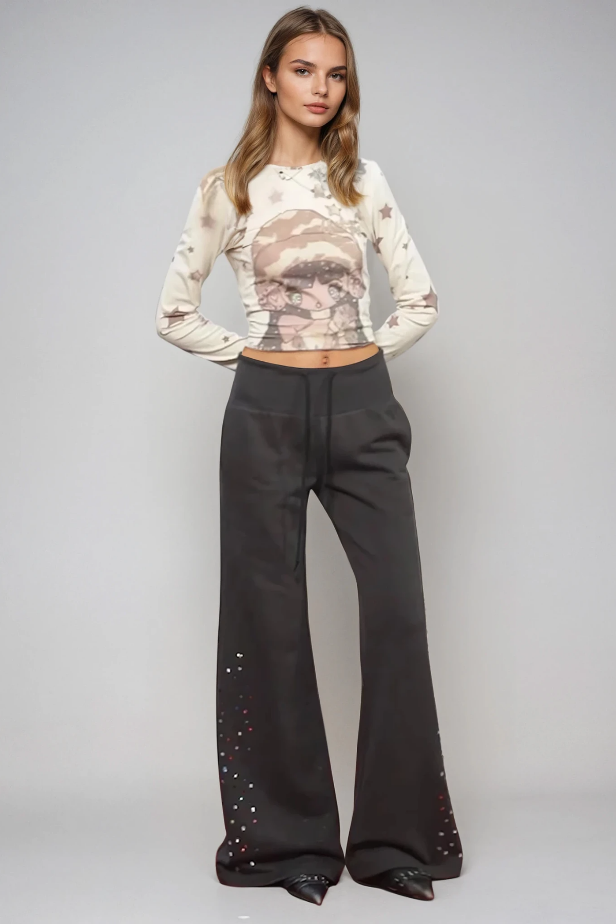 Donatella Rhinestone Bootcut Pants combine timeless silhouette with contemporary glamour. The bootcut design elongates the leg while maintaining a flattering fit through the hip and thigh. Strategically placed rhinestones add sophisticated sparkle without overwhelming the classic denim foundation. Perfect for elevating everyday wear or creating statement-worthy evening looks, these pants transition seamlessly from casual to dressed-up occasions. Premium construction ensures durability and lasting comfort, making them a versatile investment piece for any wardrobe.