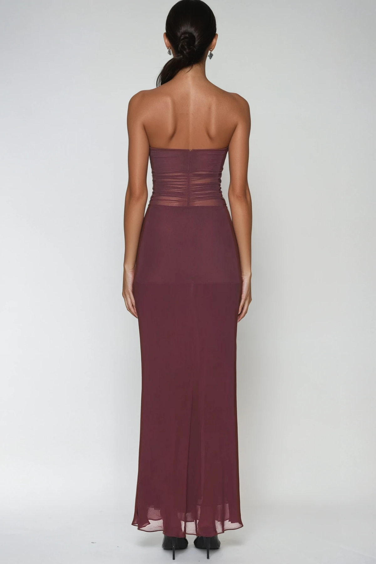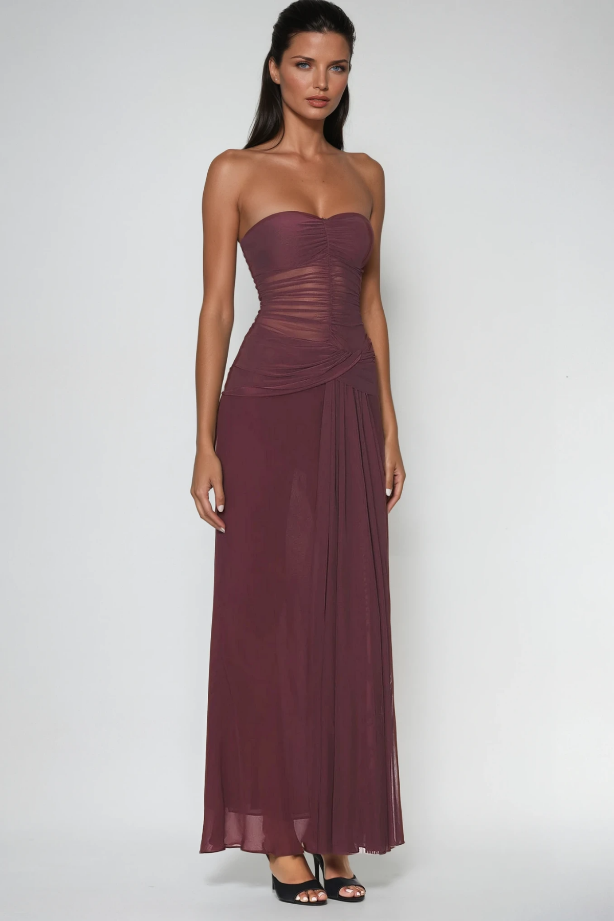 Dzmitry Strapless Ruch Mesh Maxi Dress