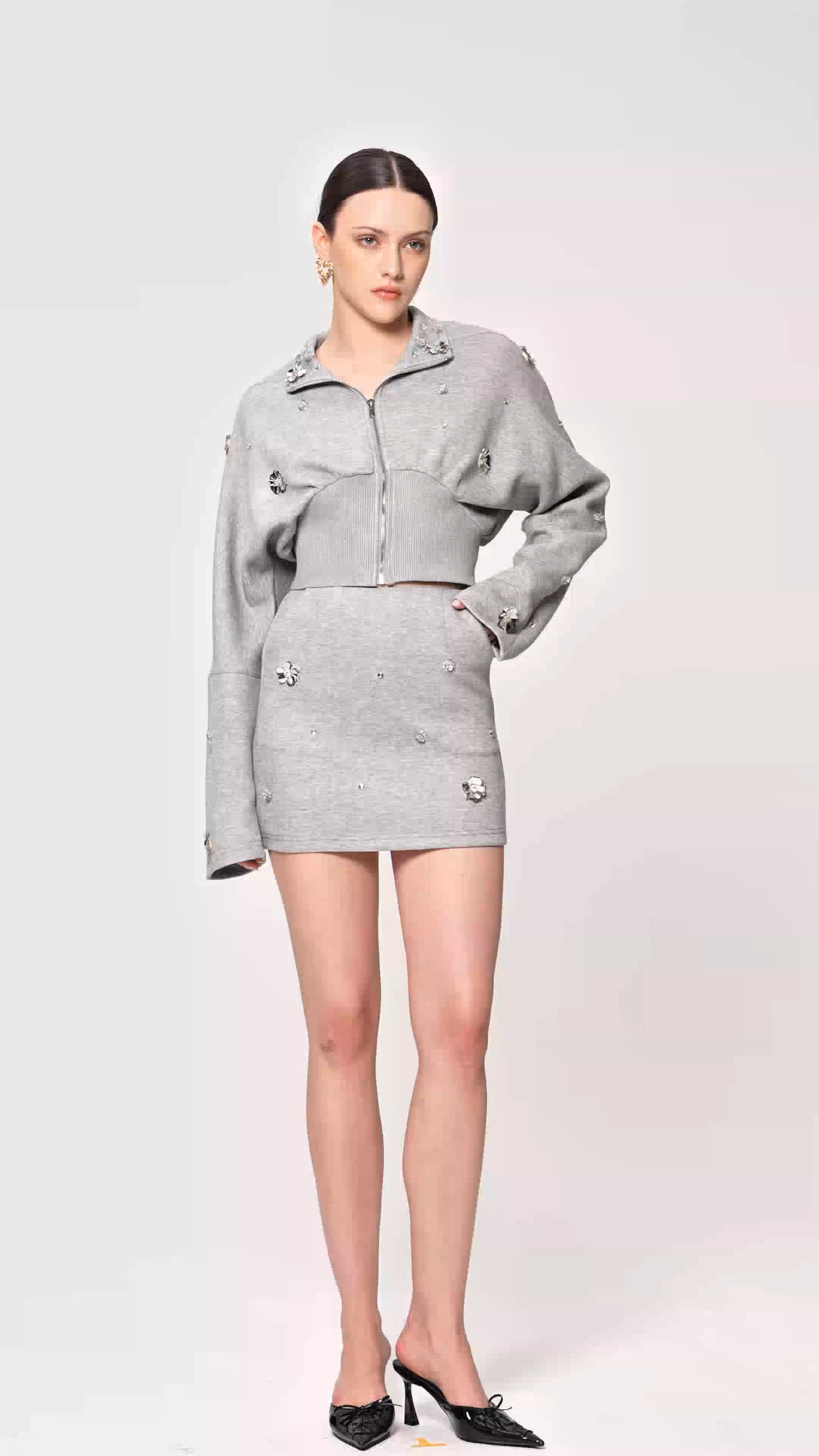Eireen Flower Crop Skirt Set This two-piece ensemble combines a fitted crop top with a coordinating skirt, unified by an elegant floral motif. The crop top offers a contemporary silhouette that pairs seamlessly with the skirt's tailored cut, creating a polished look suitable for both casual outings and elevated occasions. The floral pattern adds visual interest while maintaining versatility in your wardrobe. Quality construction ensures durability through regular wear, while the coordinated design eliminates styling guesswork. Perfect for those seeking a cohesive, fashion-forward piece that transitions effortlessly from day to evening.
