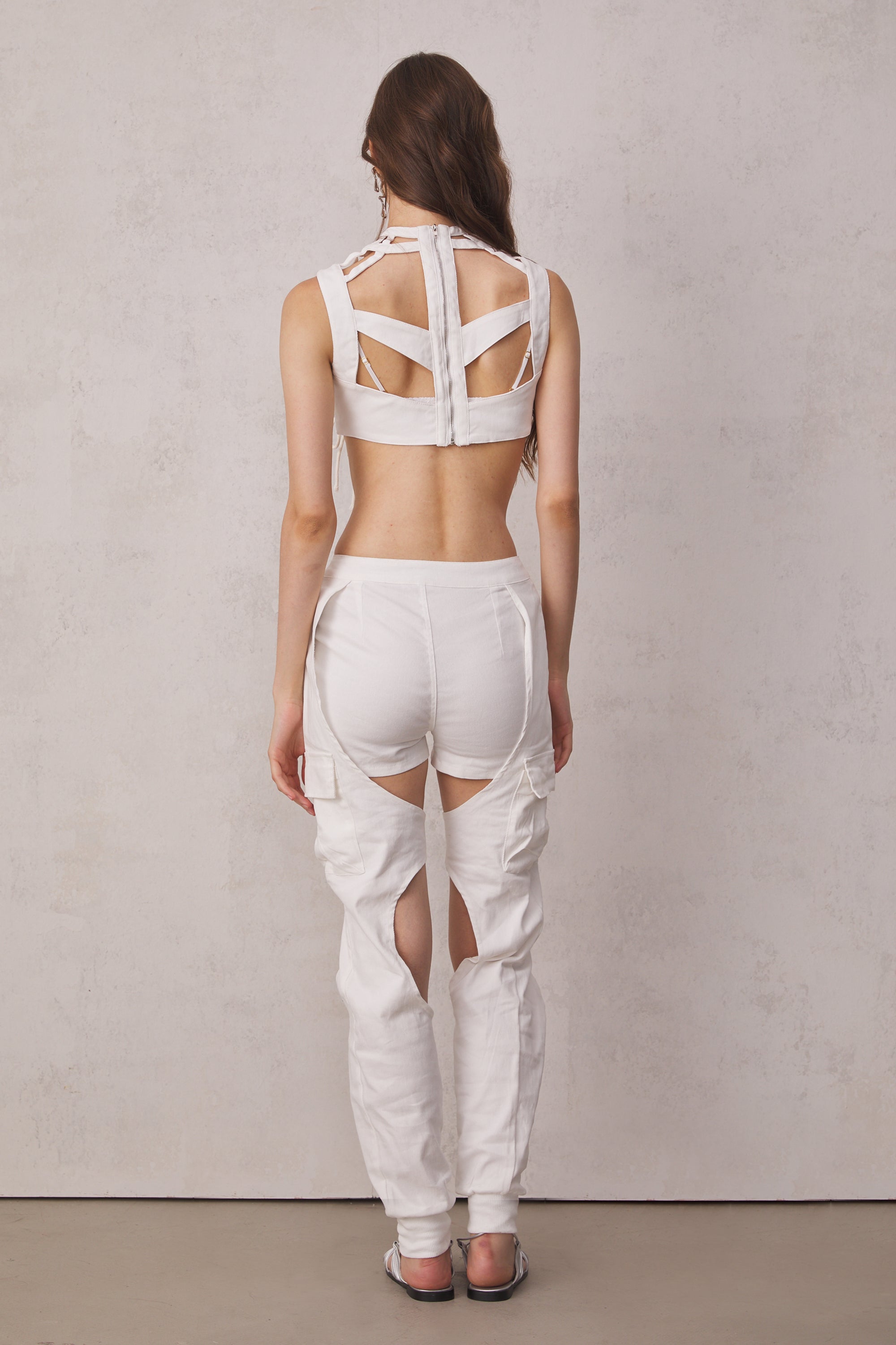 These Emerald Cutout Deconstruct Jeans feature a unique design that combines different shades of green to create a stylish patchwork pattern. Made from high-quality denim, these jeans offer durability and a comfortable fit. Elevate your style with these one-of-a-kind jeans.