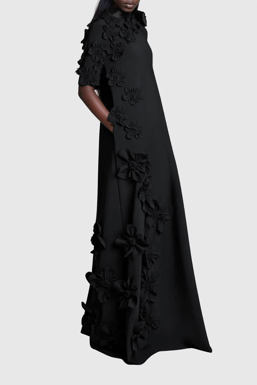Adobe Long Sleeve Rhinestone Flower Maxi Dress In Black