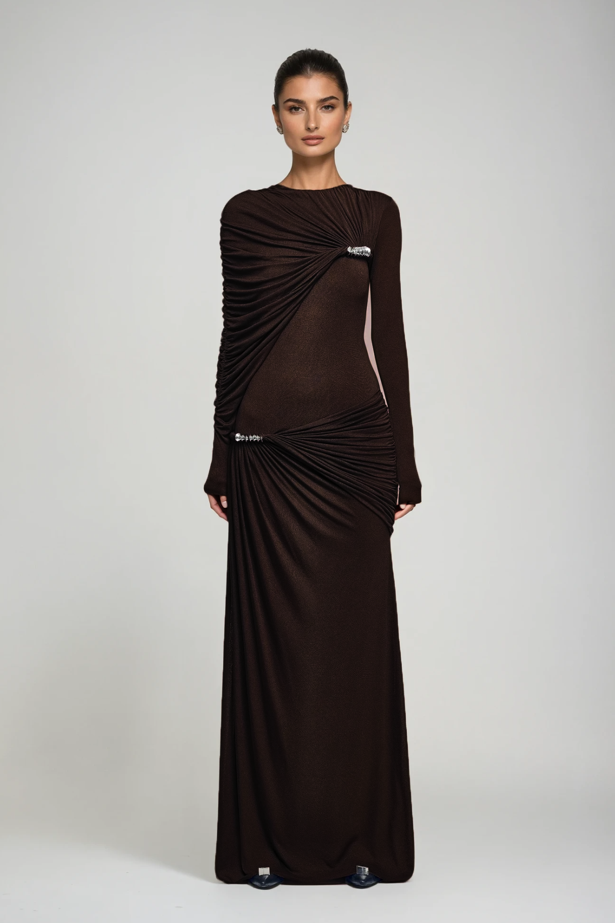 Dany Twist Long Sleeve Maxi Dress In Brown