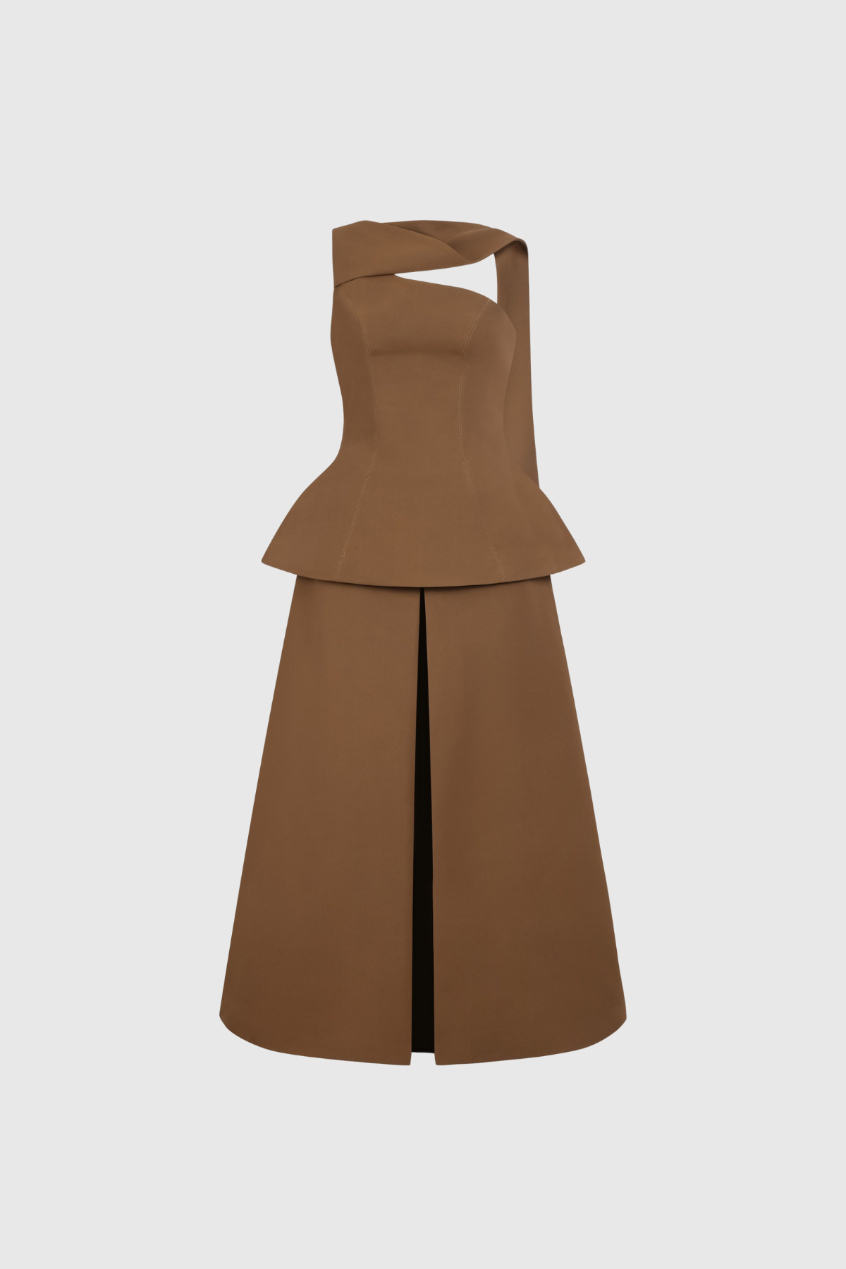 Douglass Asymmetric Ruch Maxi Dress In Brown