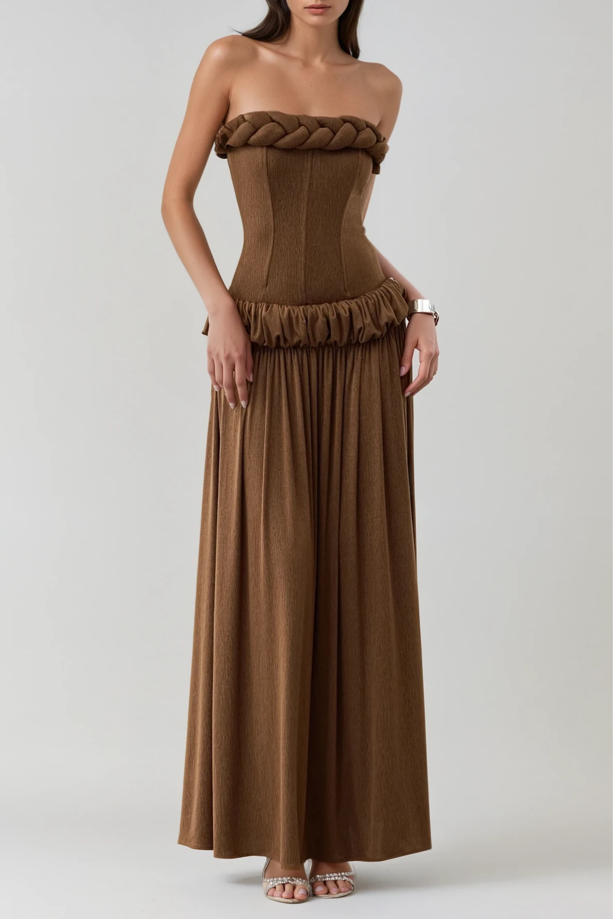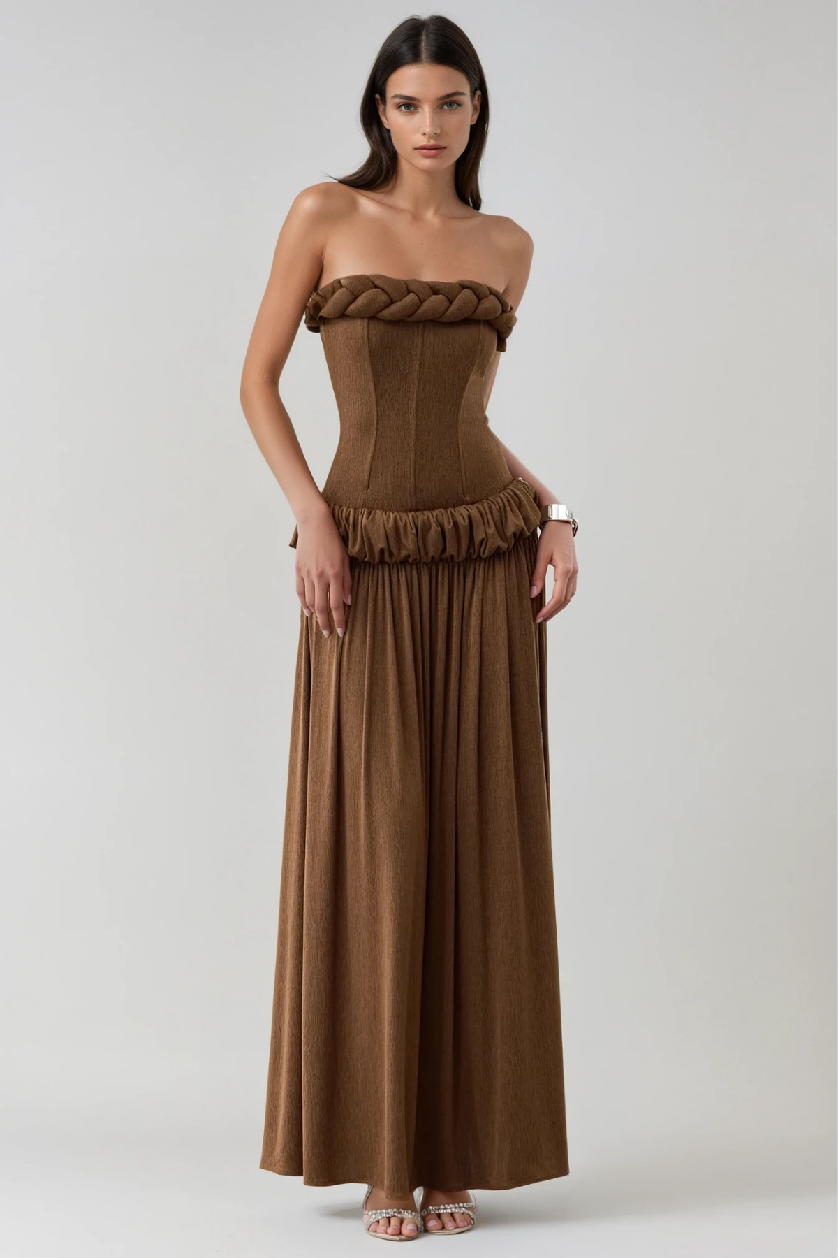 Fahmida Strapless Twist Ruch Maxi Dress