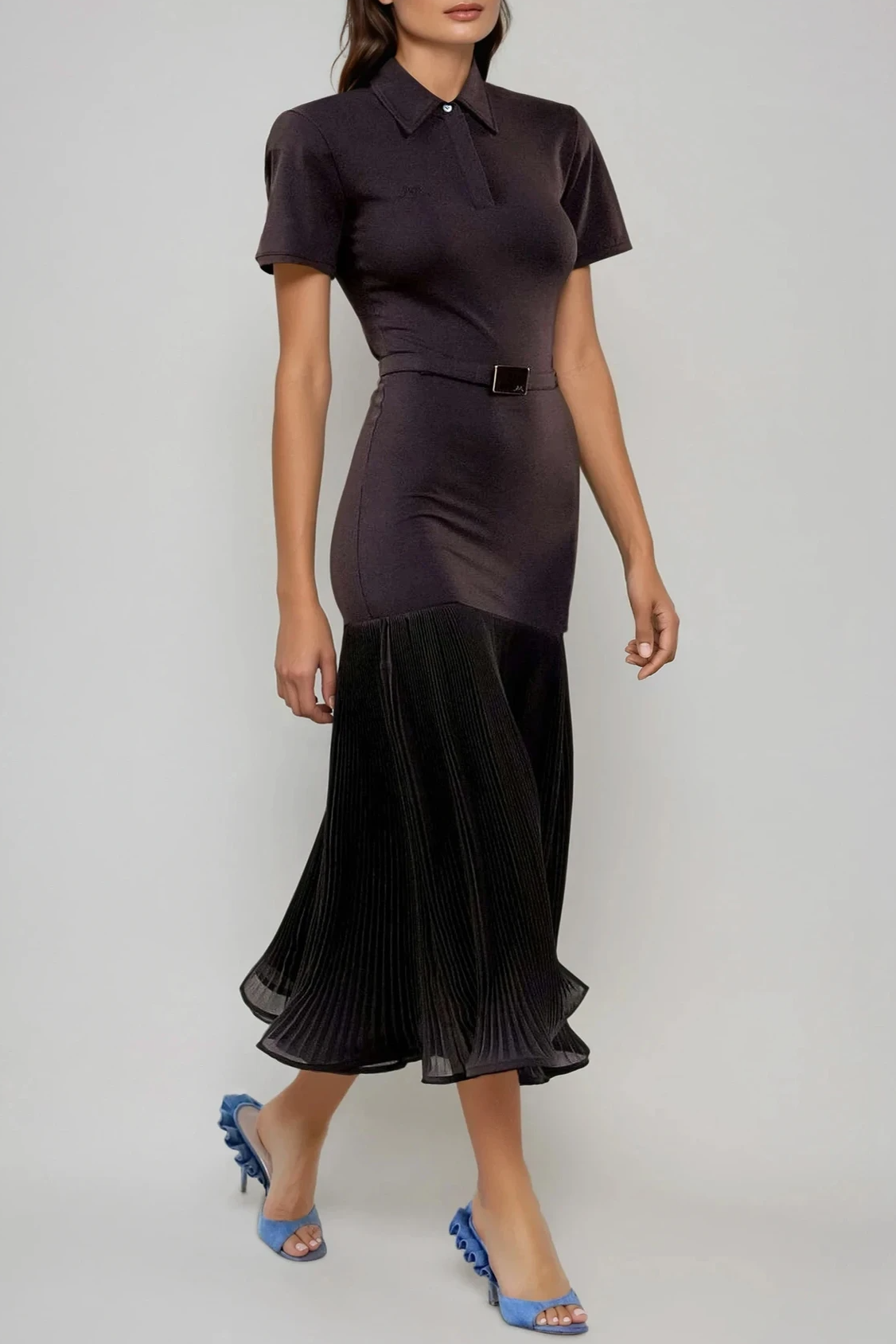 Faith Lapel Deconstruct Pleated Maxi Dress
