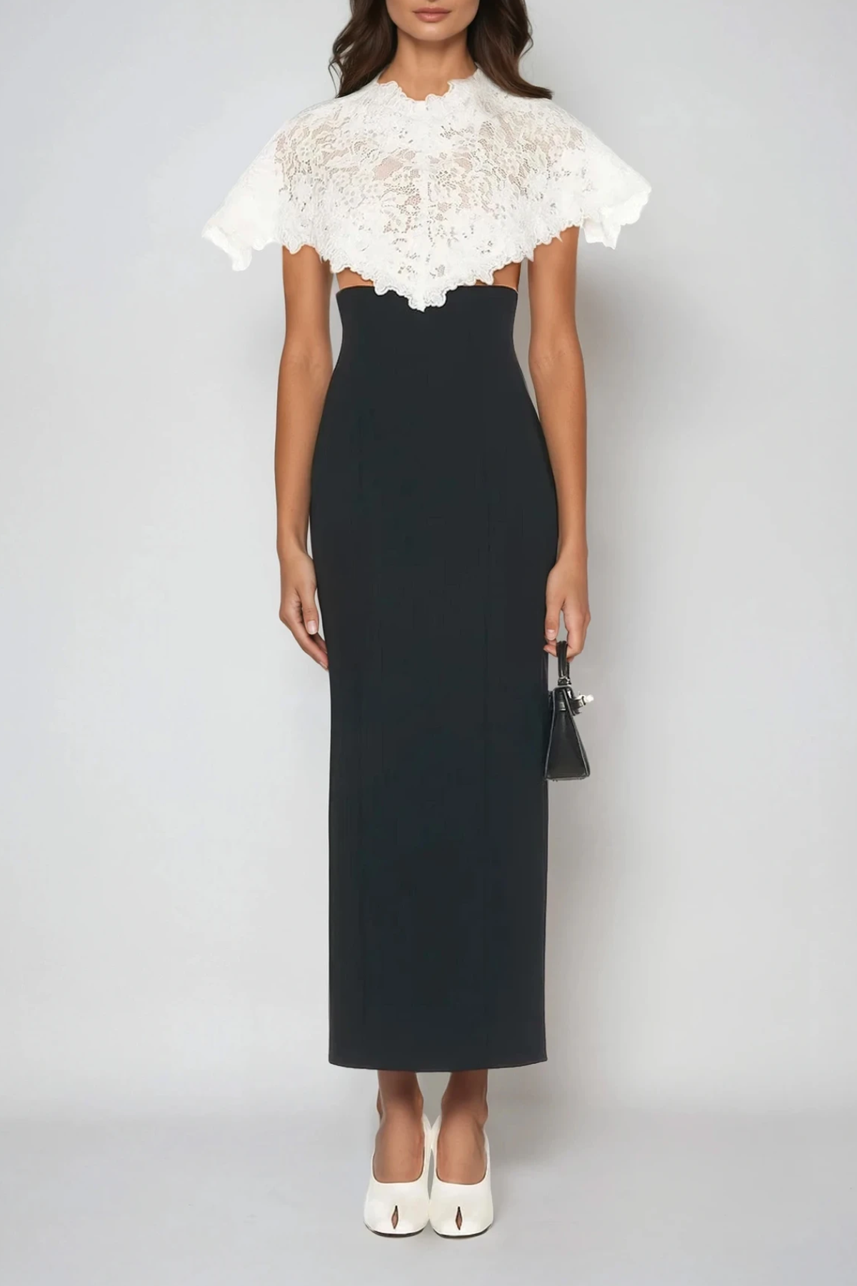 Domnica Lace Shawl Embroidered Split Midi Dress