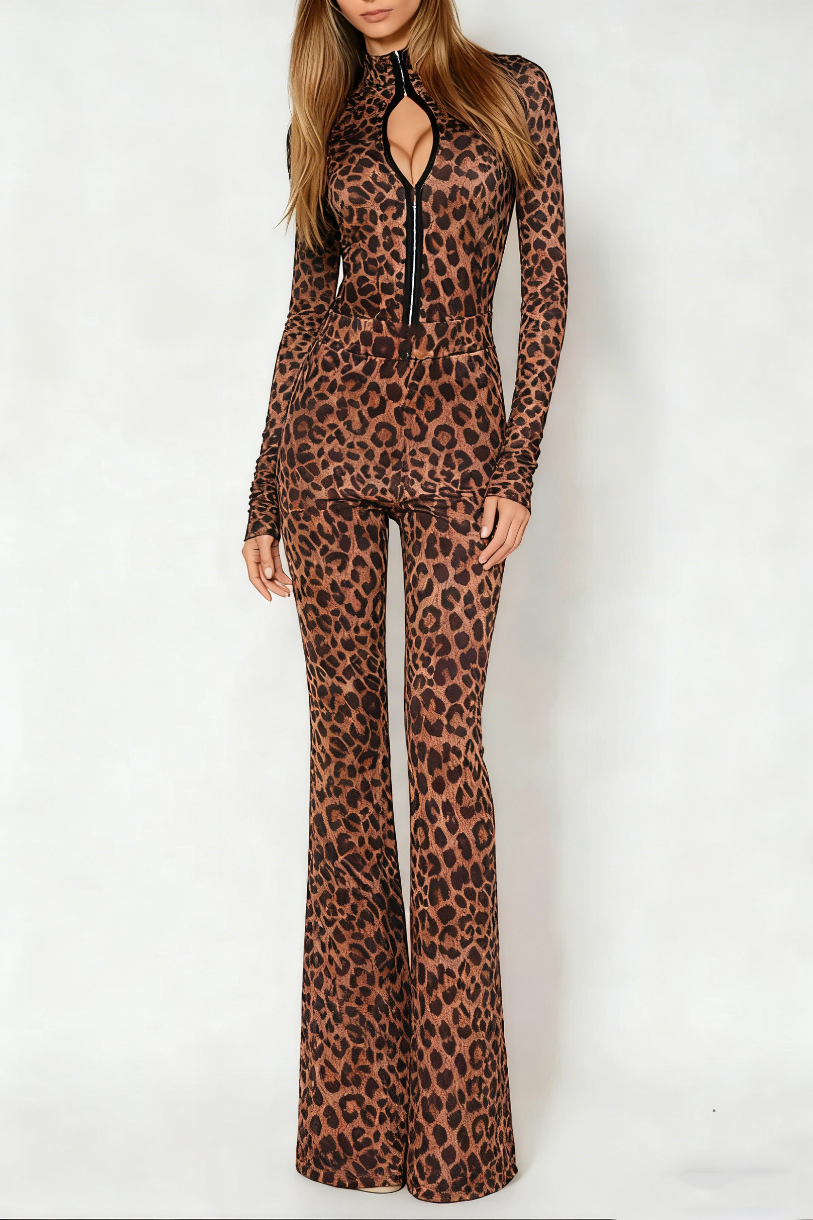 Dobromila Leopard Long Sleeve Bodycon Hook Pants Set