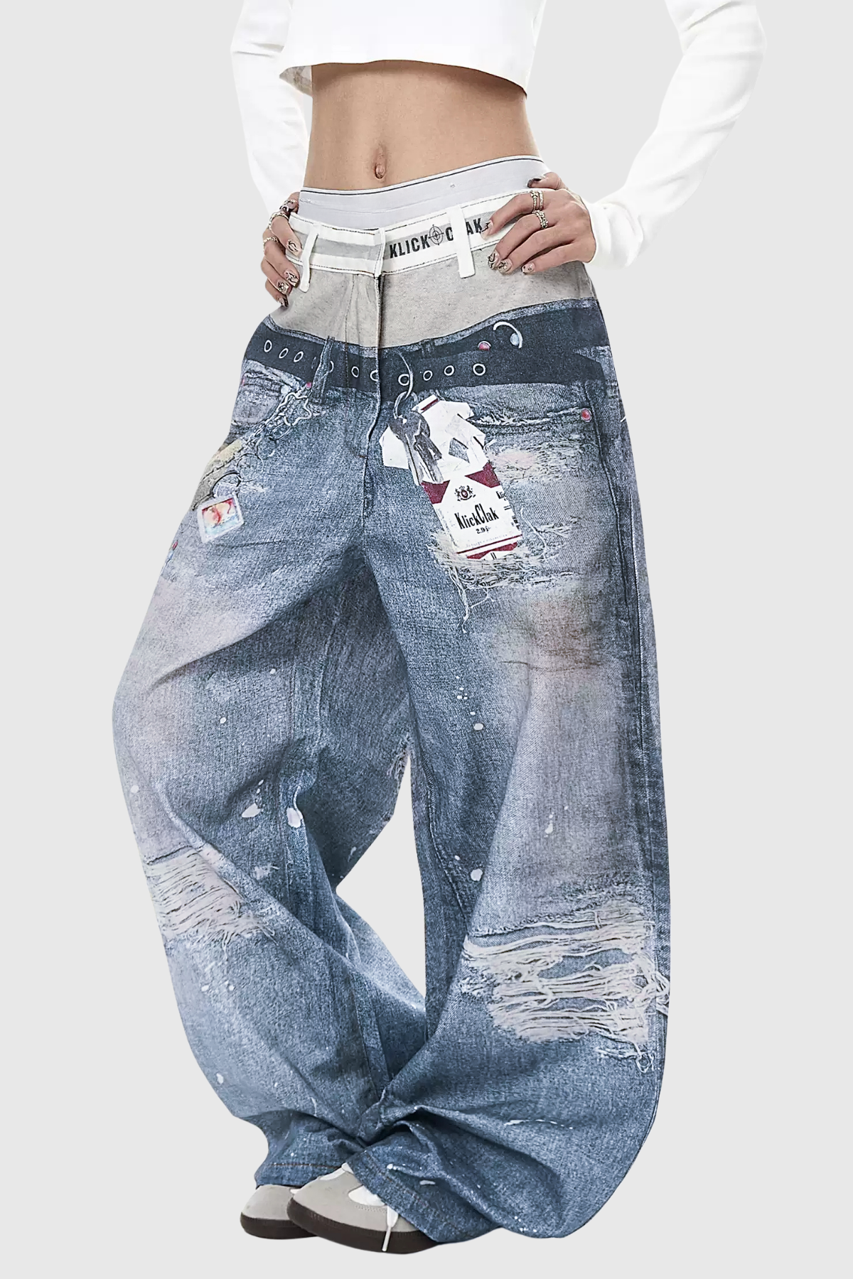 Famke Deconstruct Asymmetric Print Baggy Jeans