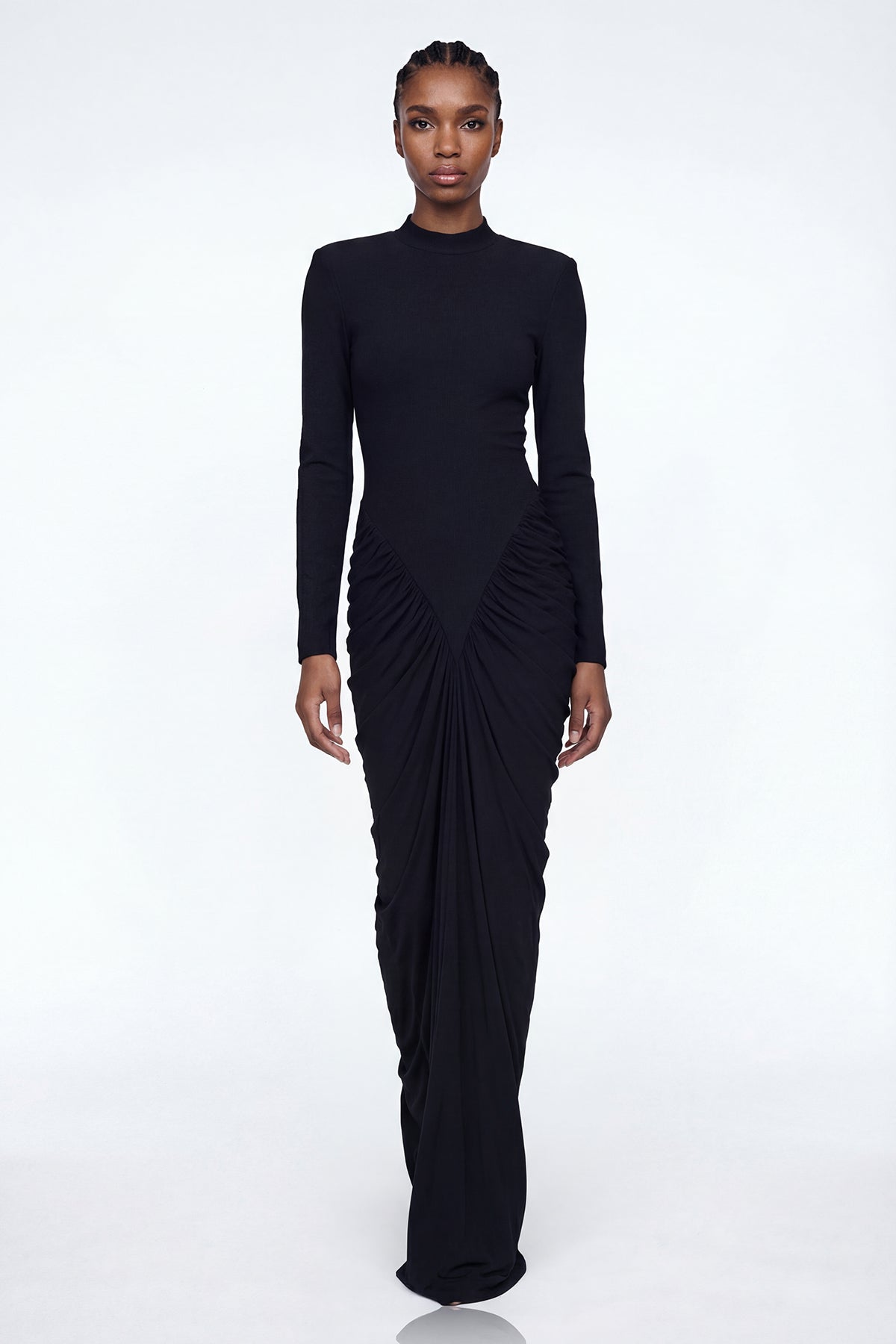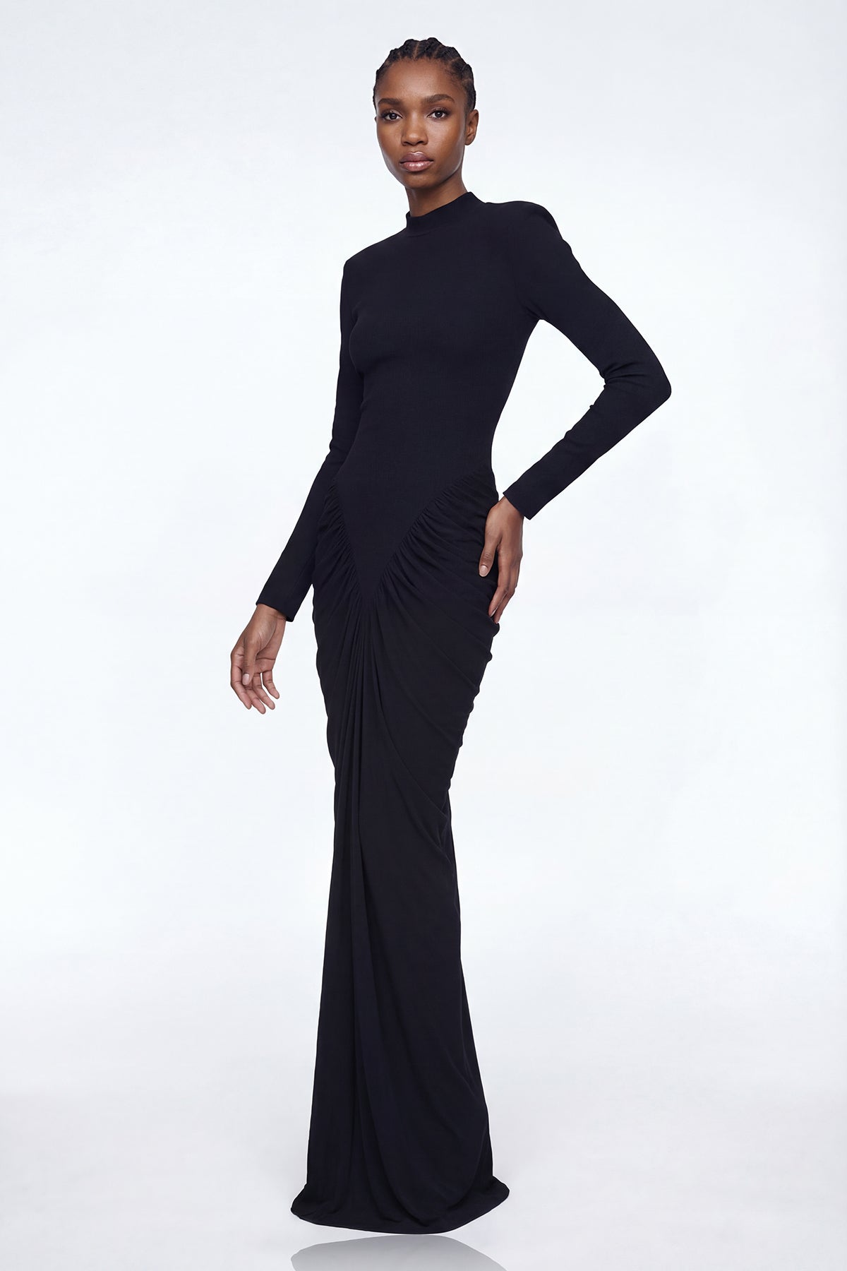 Cesarina Deconstruct Ruch Bodycon Maxi Dress In Black