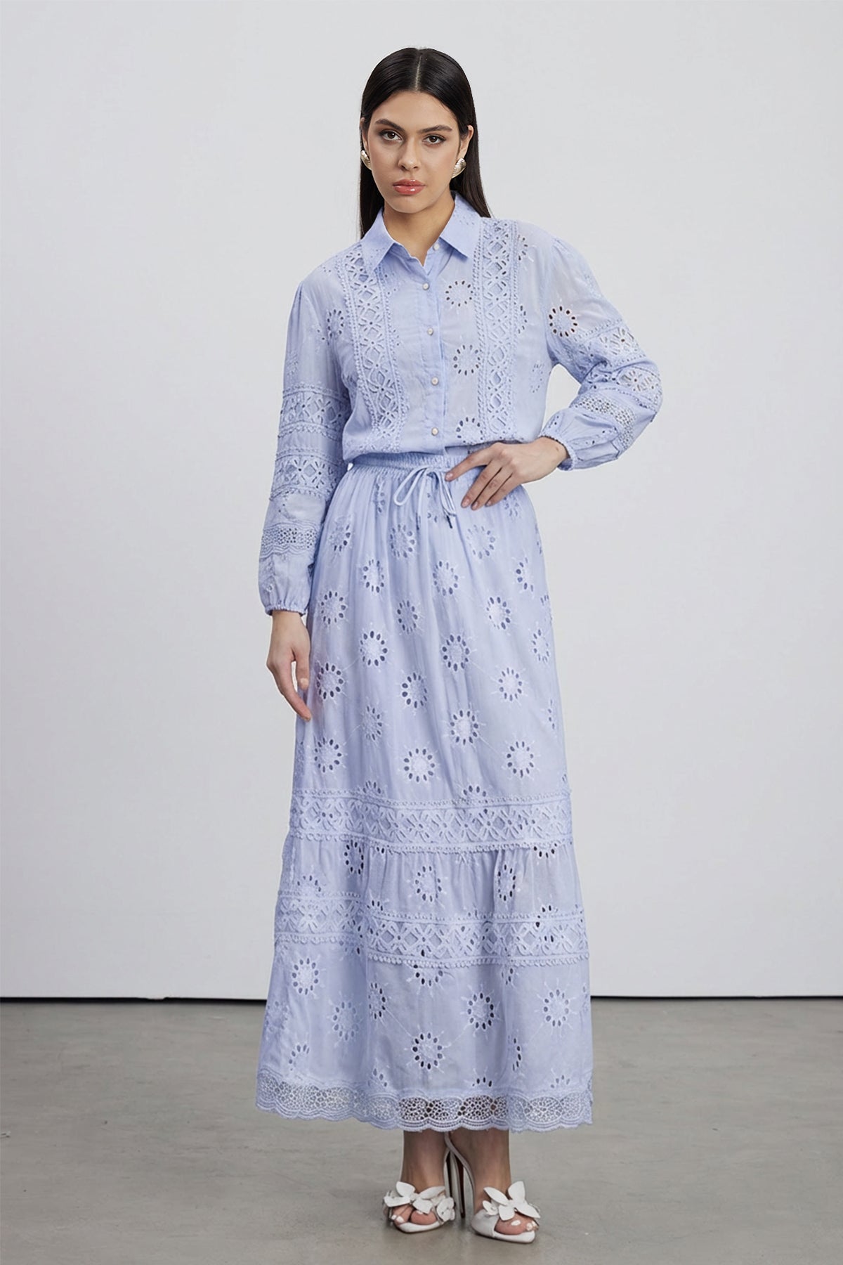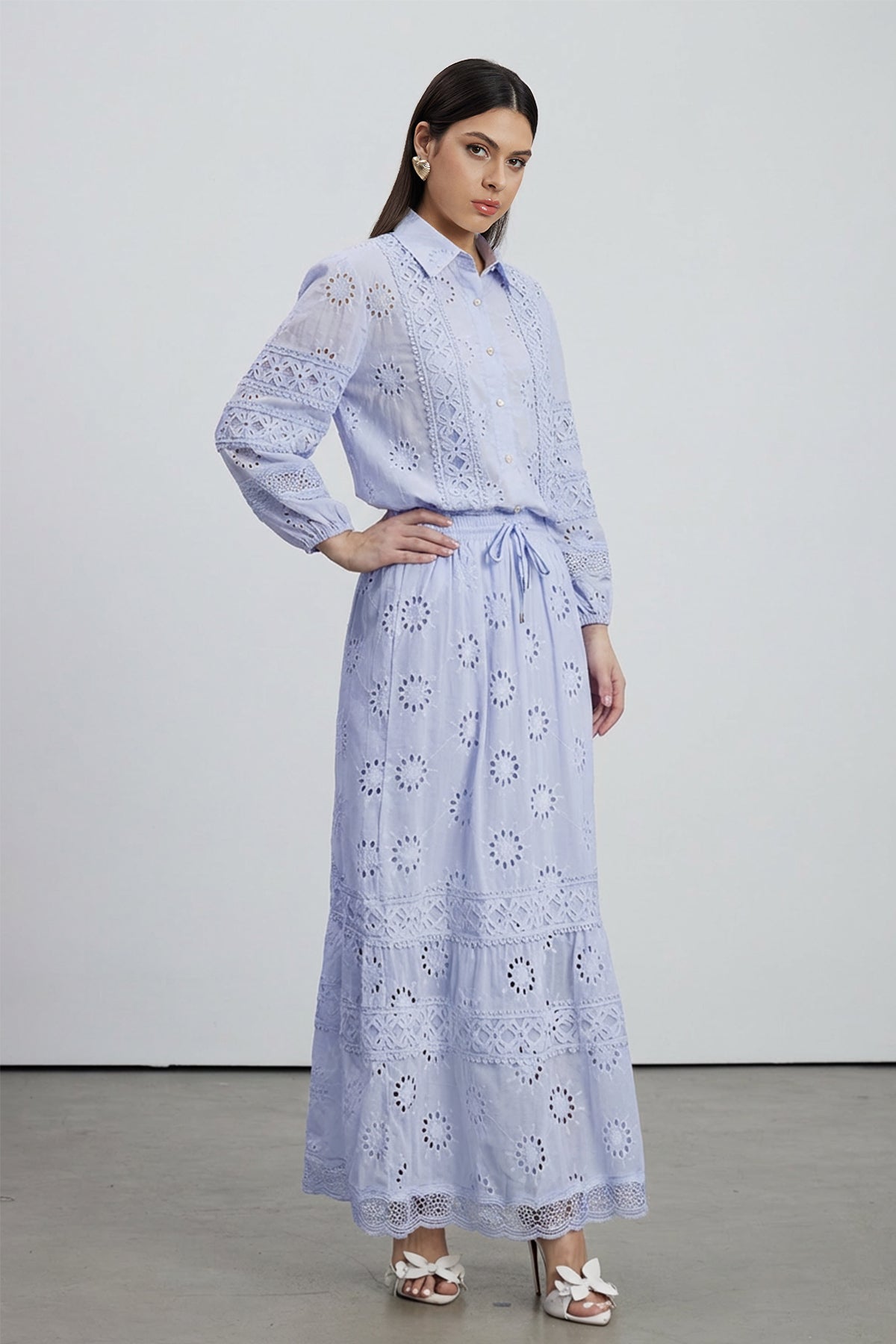 Daouda Long Sleeve Hayley Maxi Dress In Blue