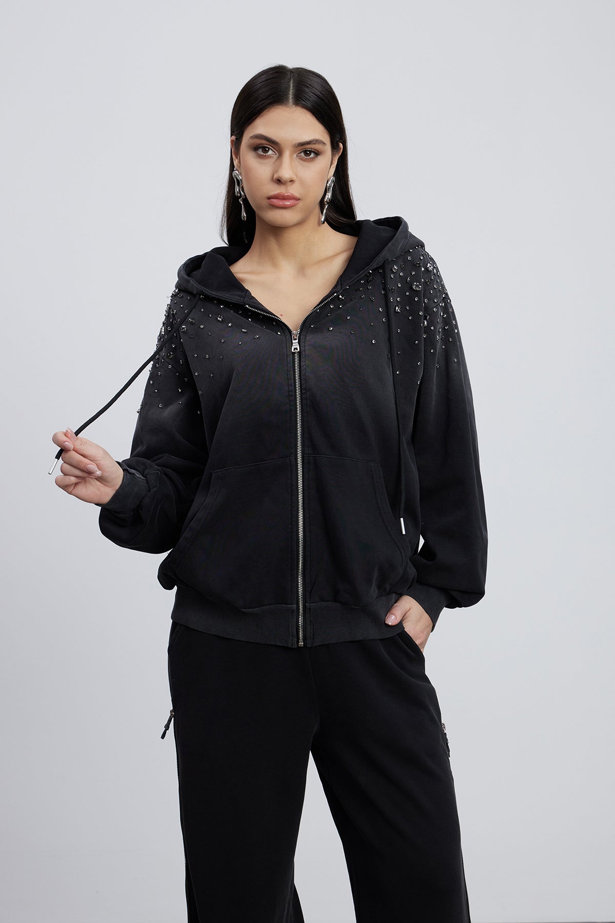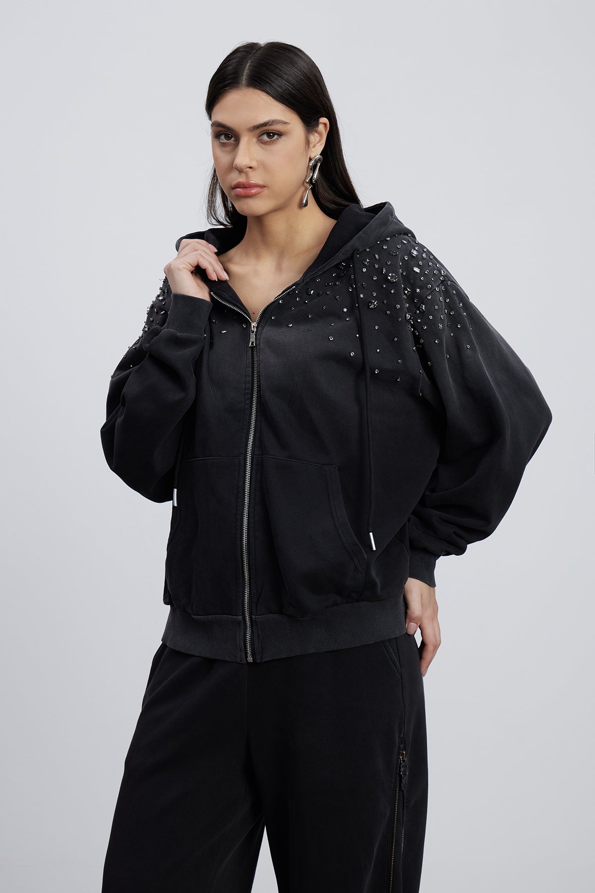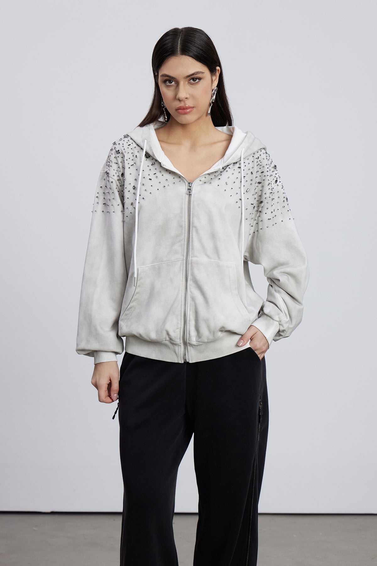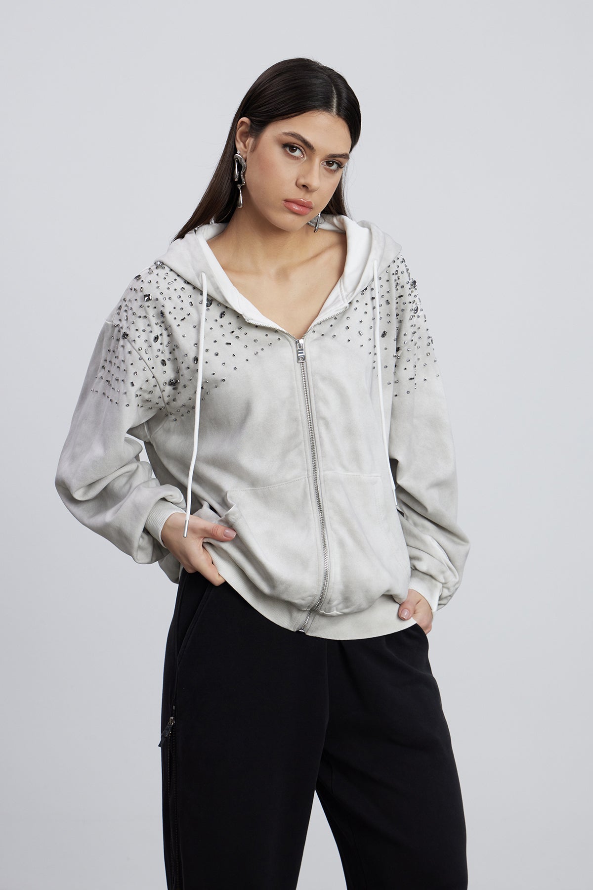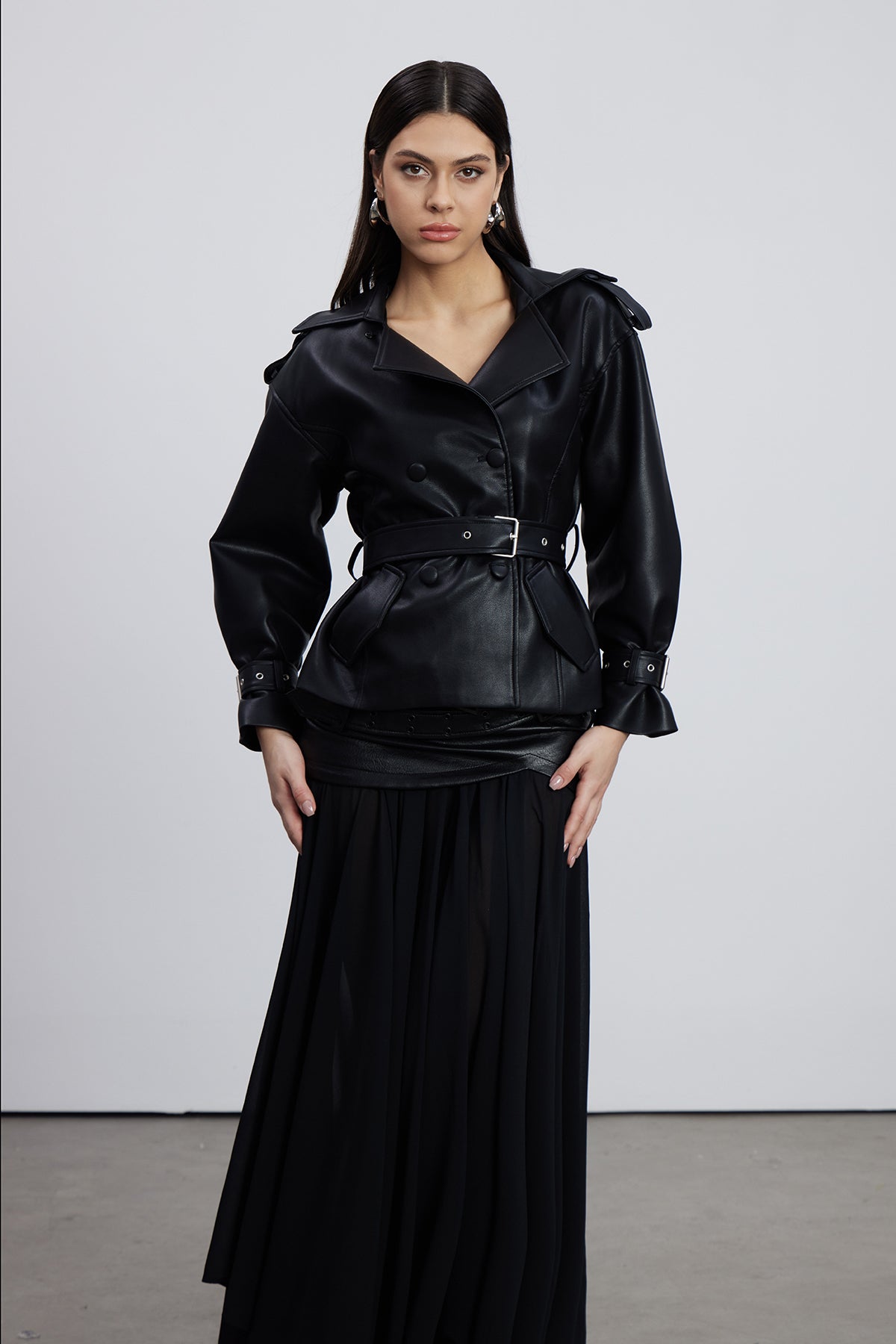 Antiope Hooded Asymmetric Crop Leather Jacket