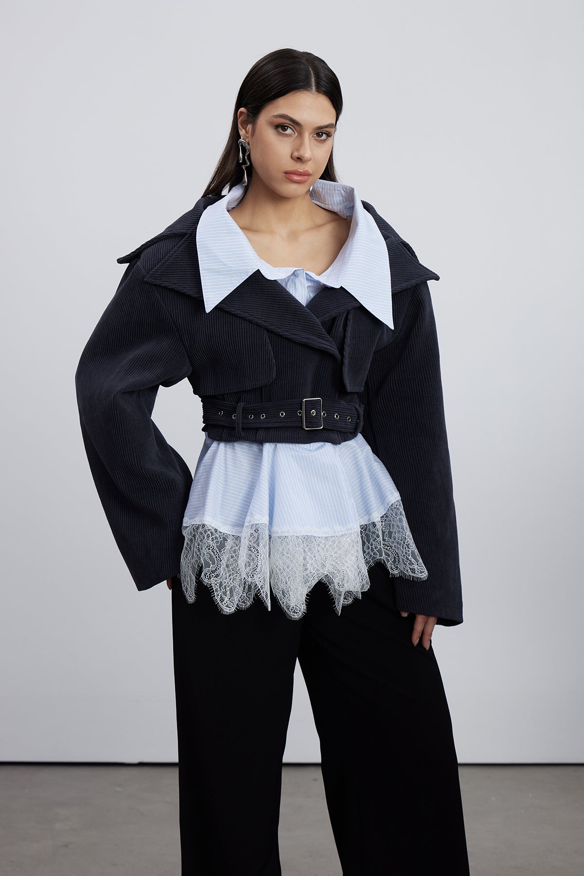 Aegle Deconstruct Asymmetric Torn Denim Jacket