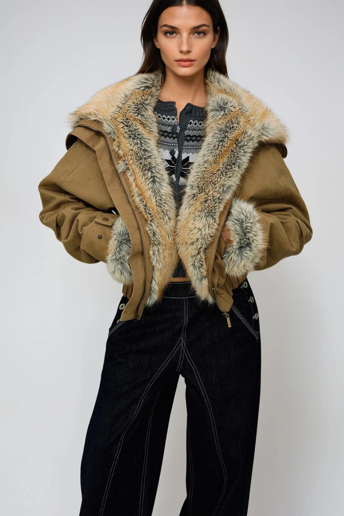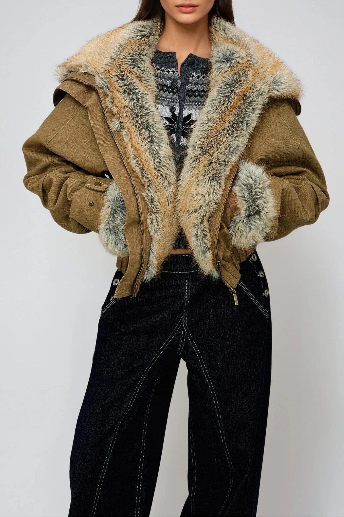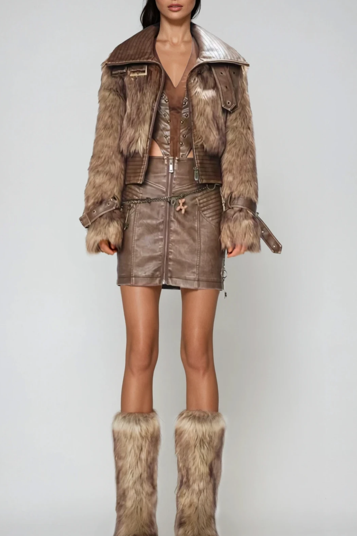 Emmeline Faux Fur Funnel Neck Jacket In Brown