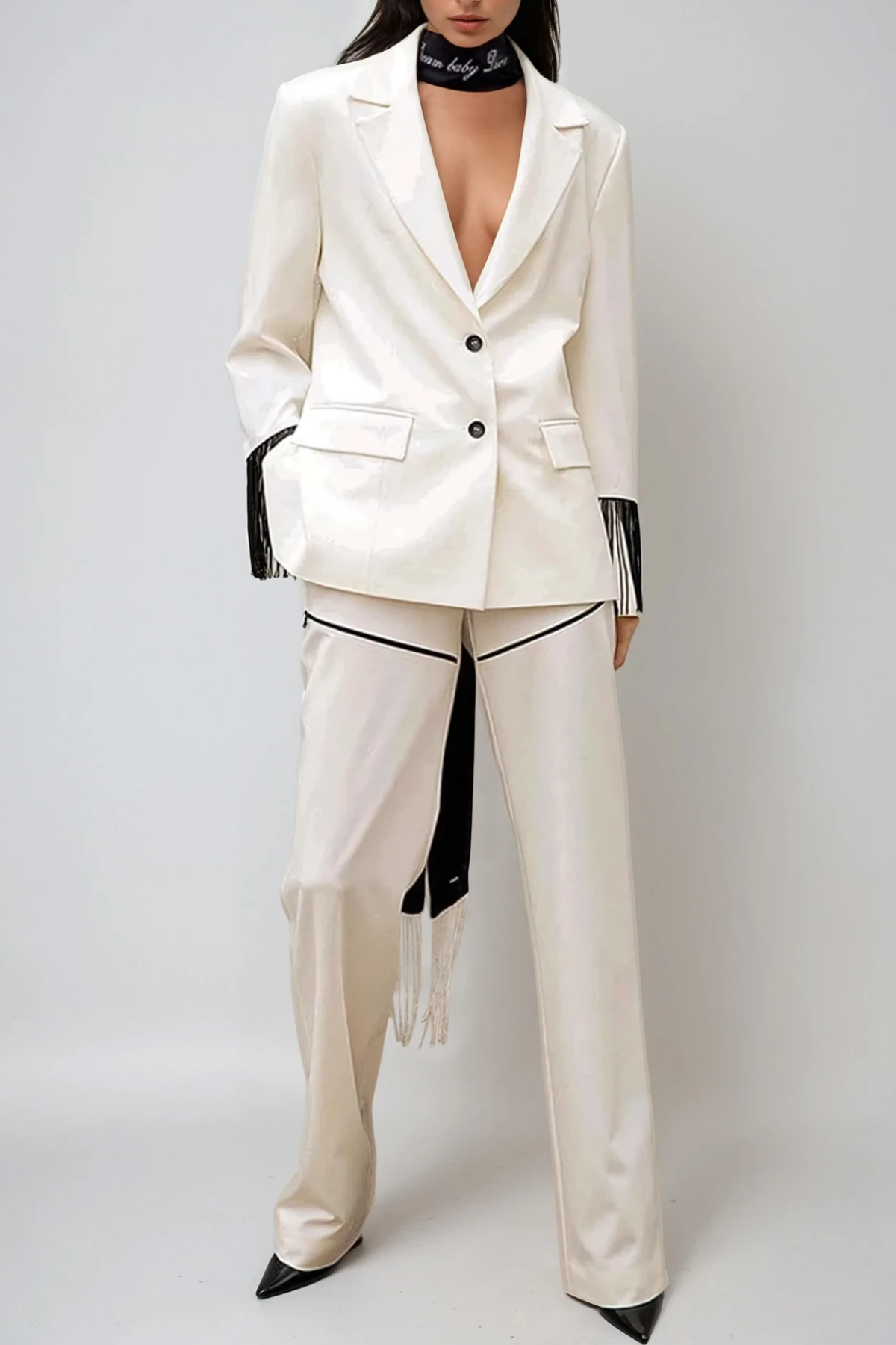 Fariba Backless Fringe Pants Set