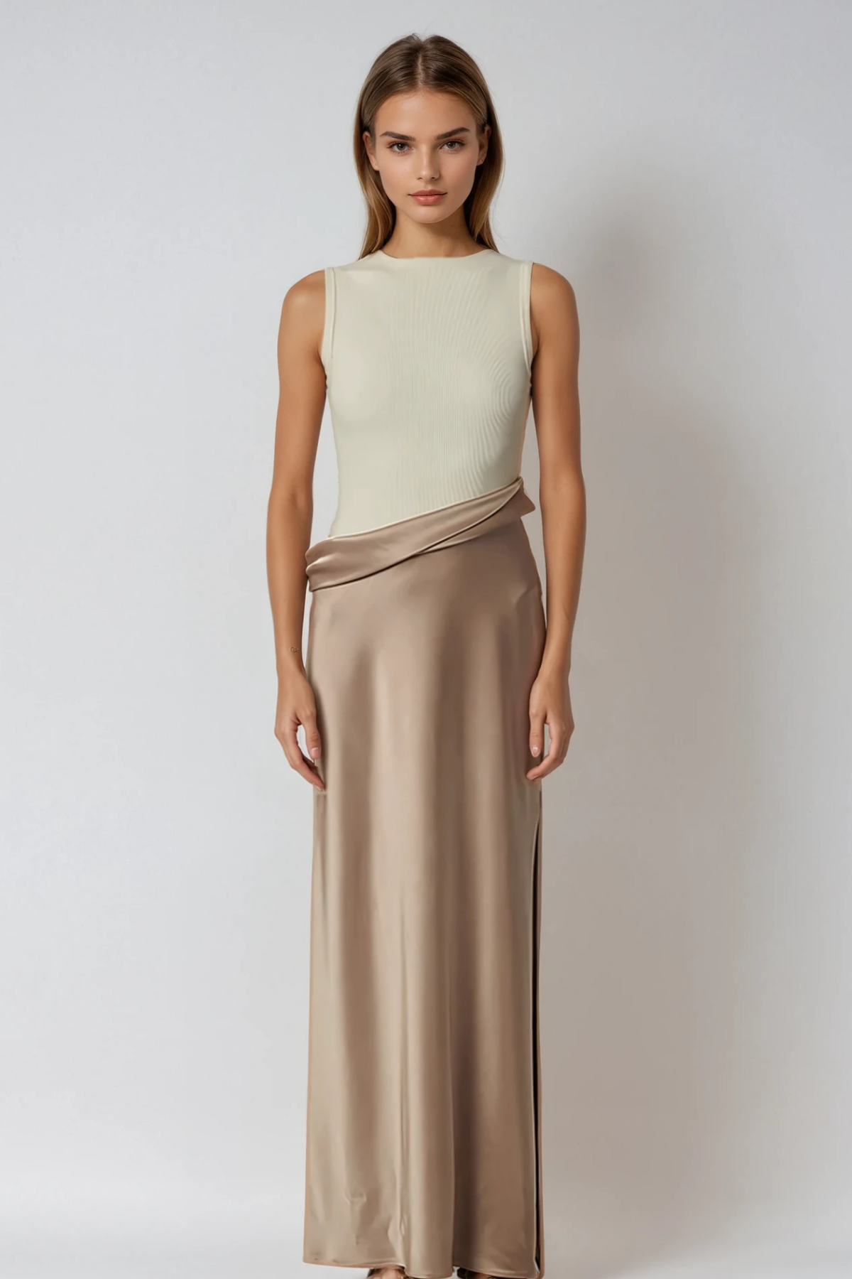 Eleonora Asymmetric Ruch Satin Maxi Dress