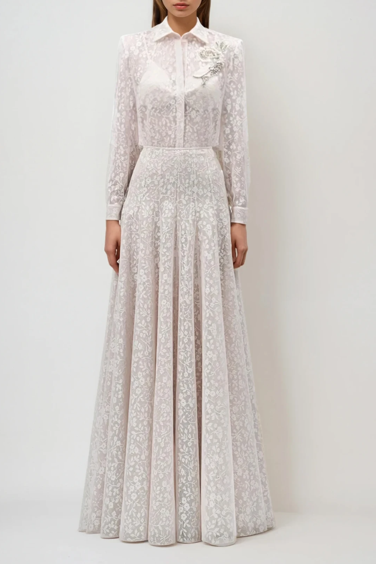 Du Embroidered Floral Lace Skirt Set