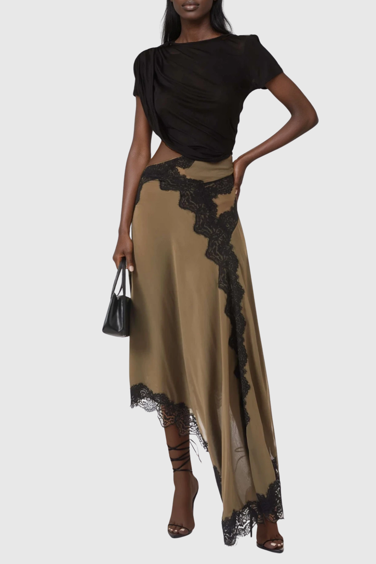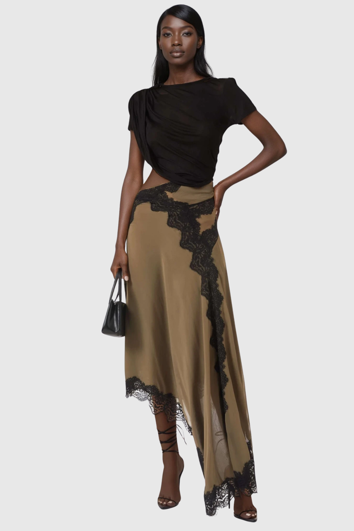 Bess Asymmetric Lace Satin Skirt Set