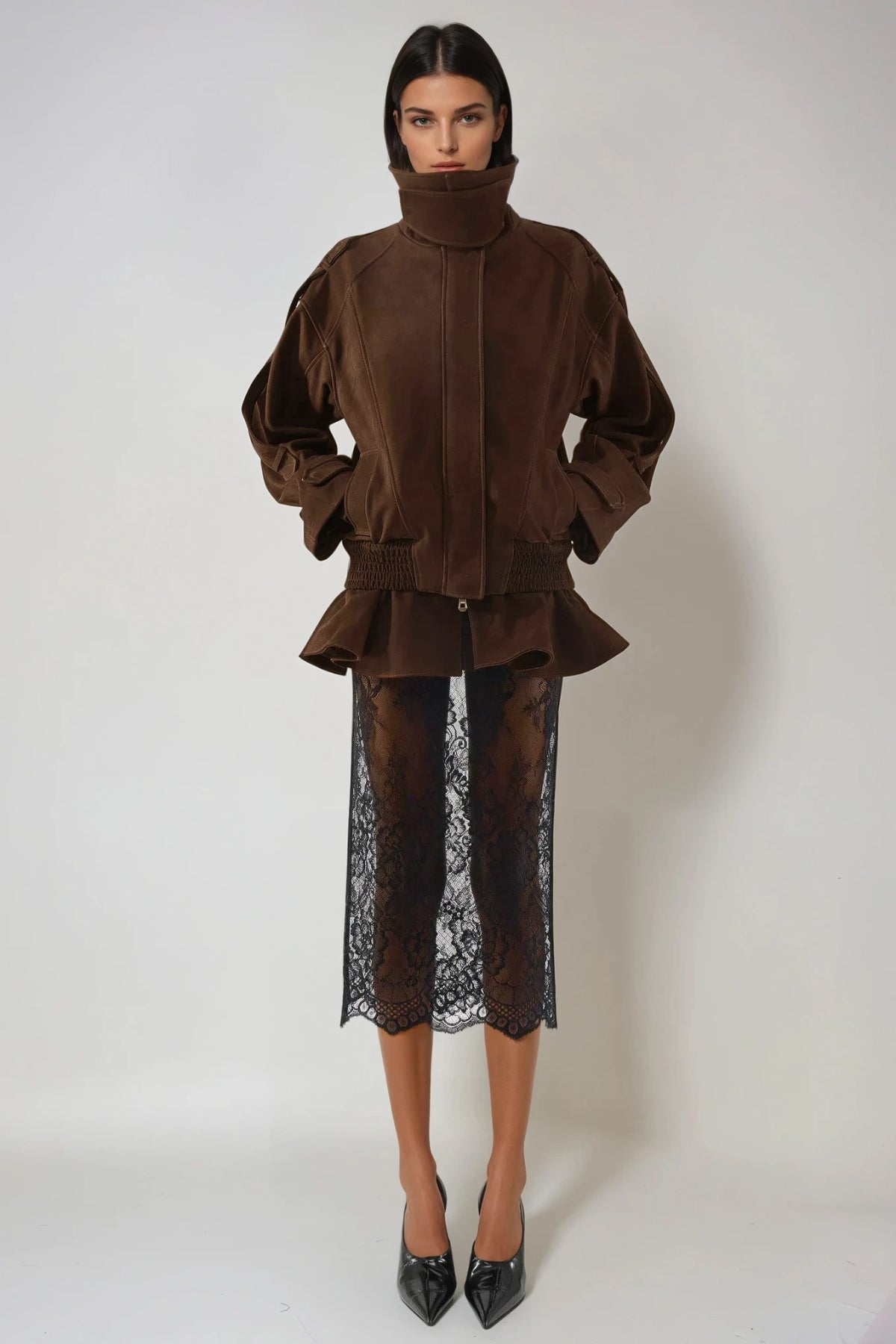 Diwata Funnel Neck Lace Skirt Set