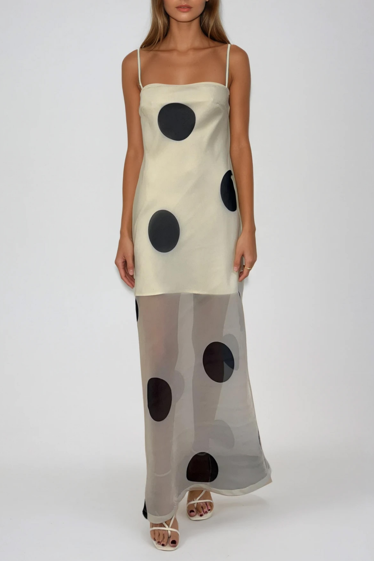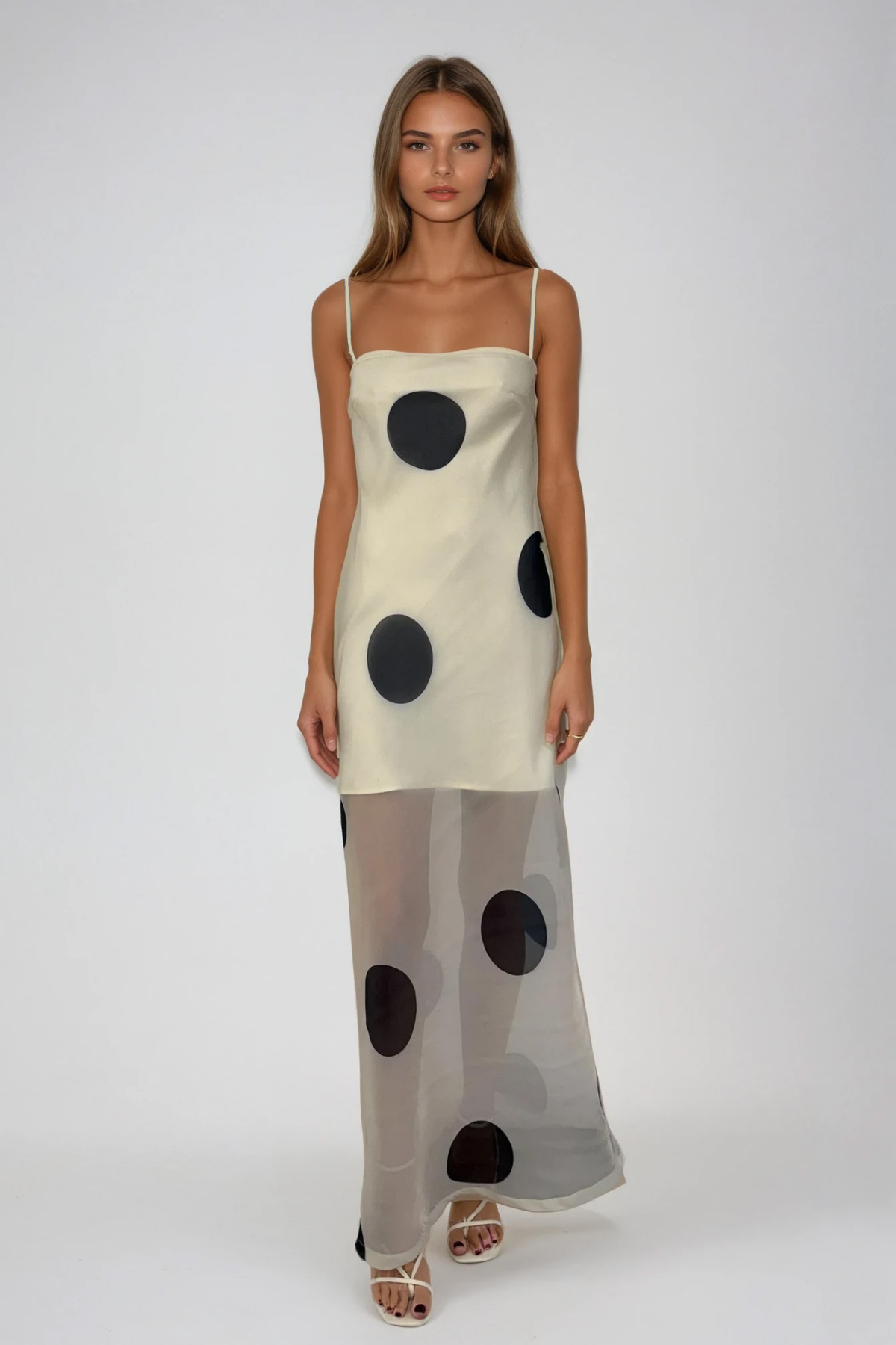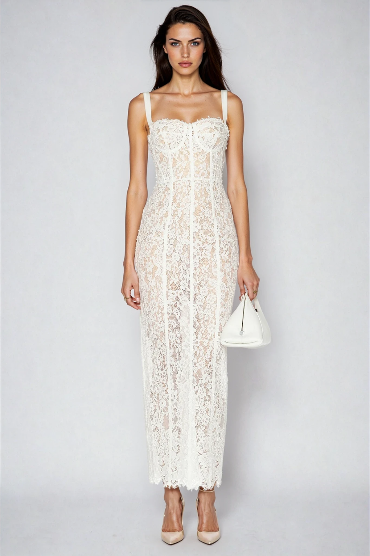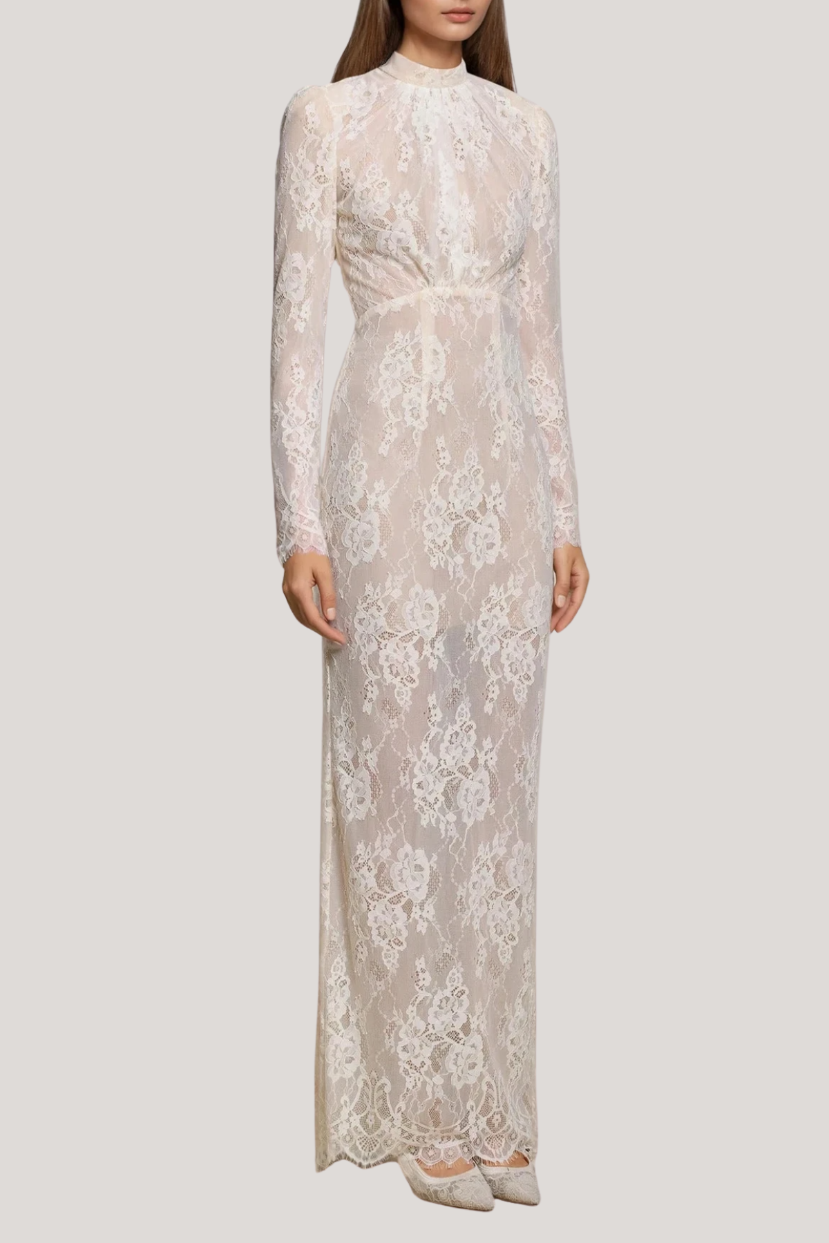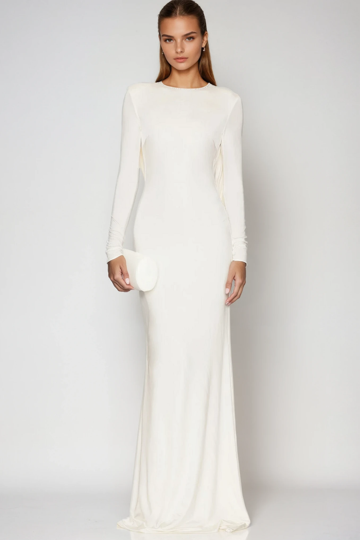 Fallon Mesh Shawl Silky Maxi Dress In White