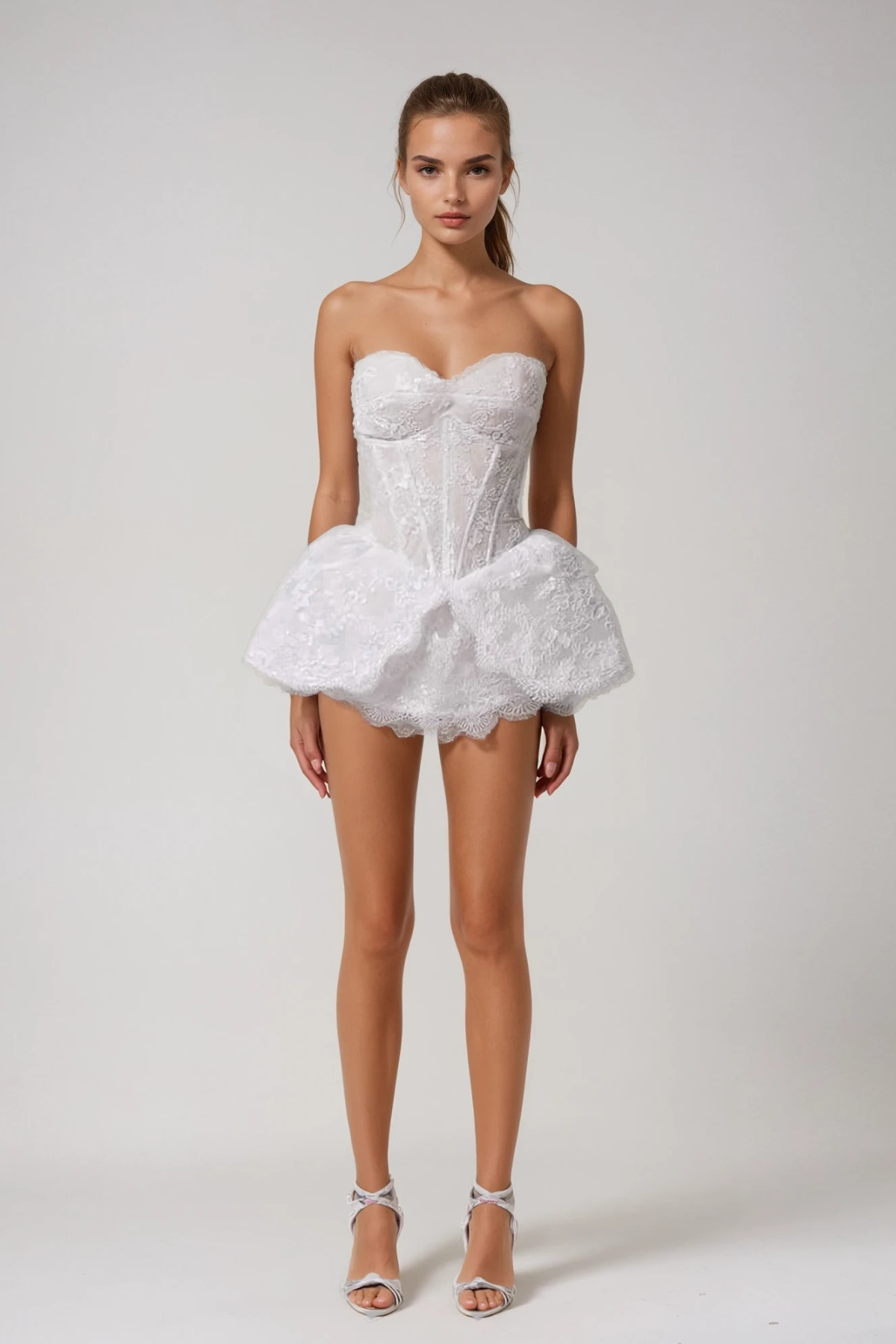 Dimitri Sequin Lace Up Puffy Mini Dress In White