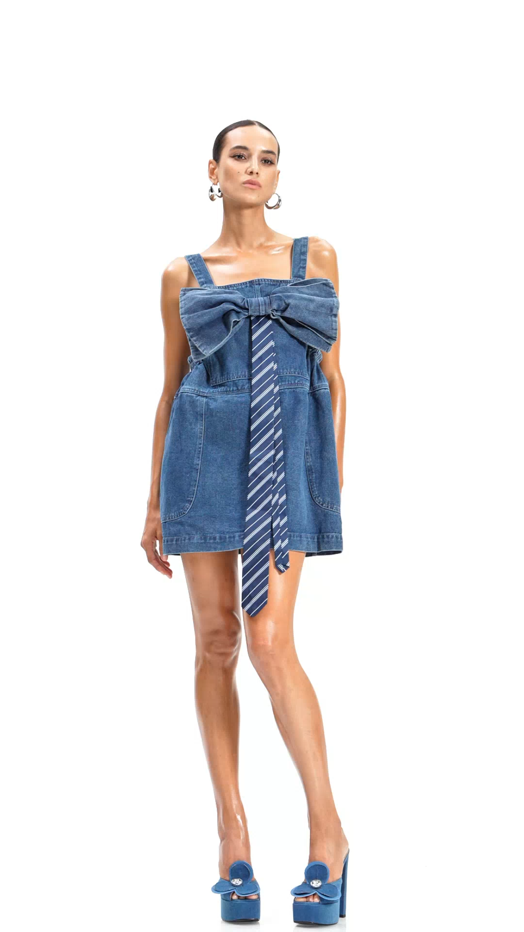The Clemmie Bow Denim Mini Dress combines classic denim durability with feminine charm. Crafted from high-quality denim, this mini dress features a flattering bow detail that adds a sophisticated touch to your look. Its tailored fit enhances silhouette definition, making it suitable for both casual outings and stylish events. The breathable fabric ensures all-day comfort, while its versatile design allows easy pairing with various accessories and footwear for a polished finish.