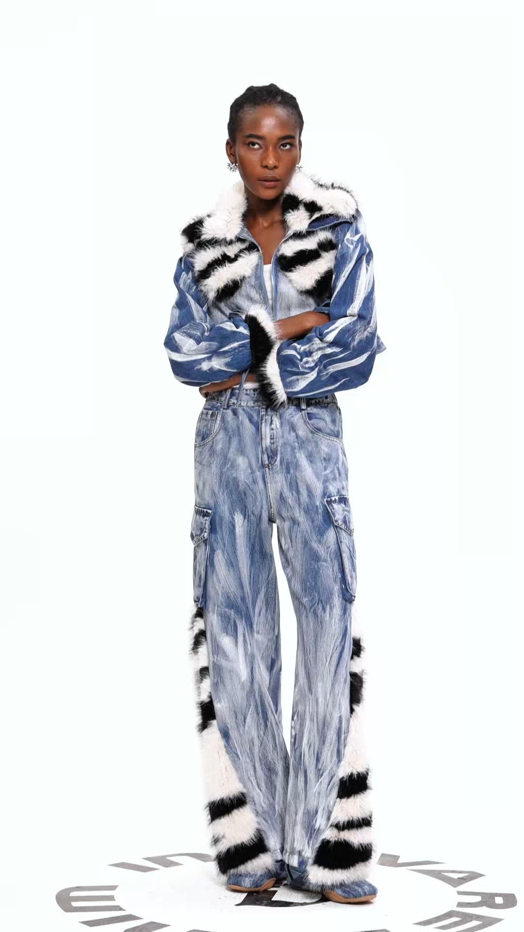 The Colombe Print Faux Fur Denim Jacket combines classic denim durability with a luxurious faux fur lining for enhanced warmth and comfort. Featuring a distinctive print, this jacket offers a sophisticated edge to your casual wardrobe while ensuring year-round versatility. Designed with attention to detail, it balances style and functionality, making it an expert choice for those seeking refined outerwear with a statement finish.