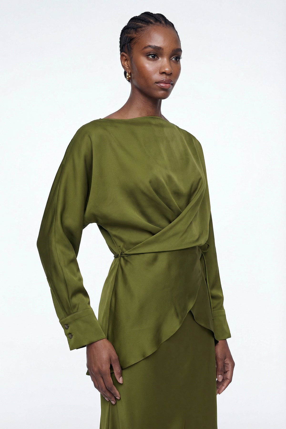 Diamantina Long Sleeve Ruch Skirt Set In Green