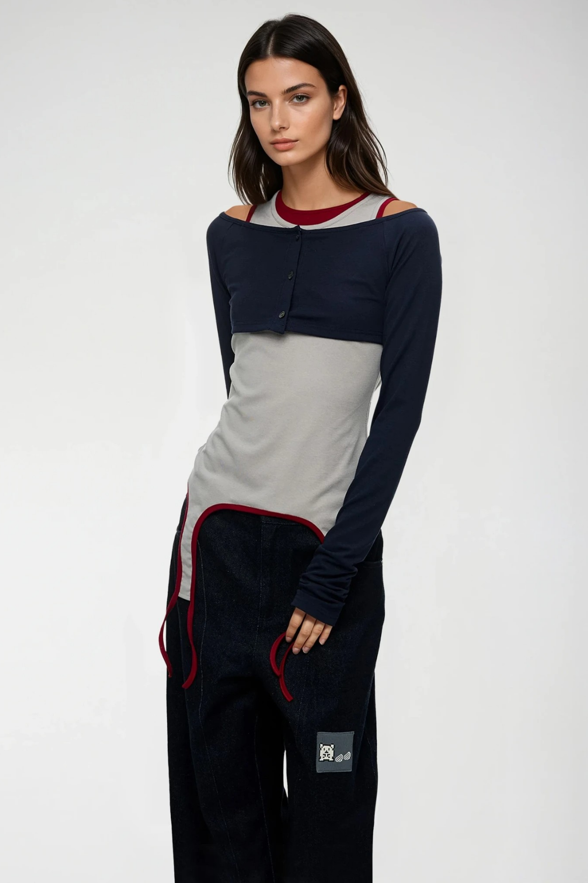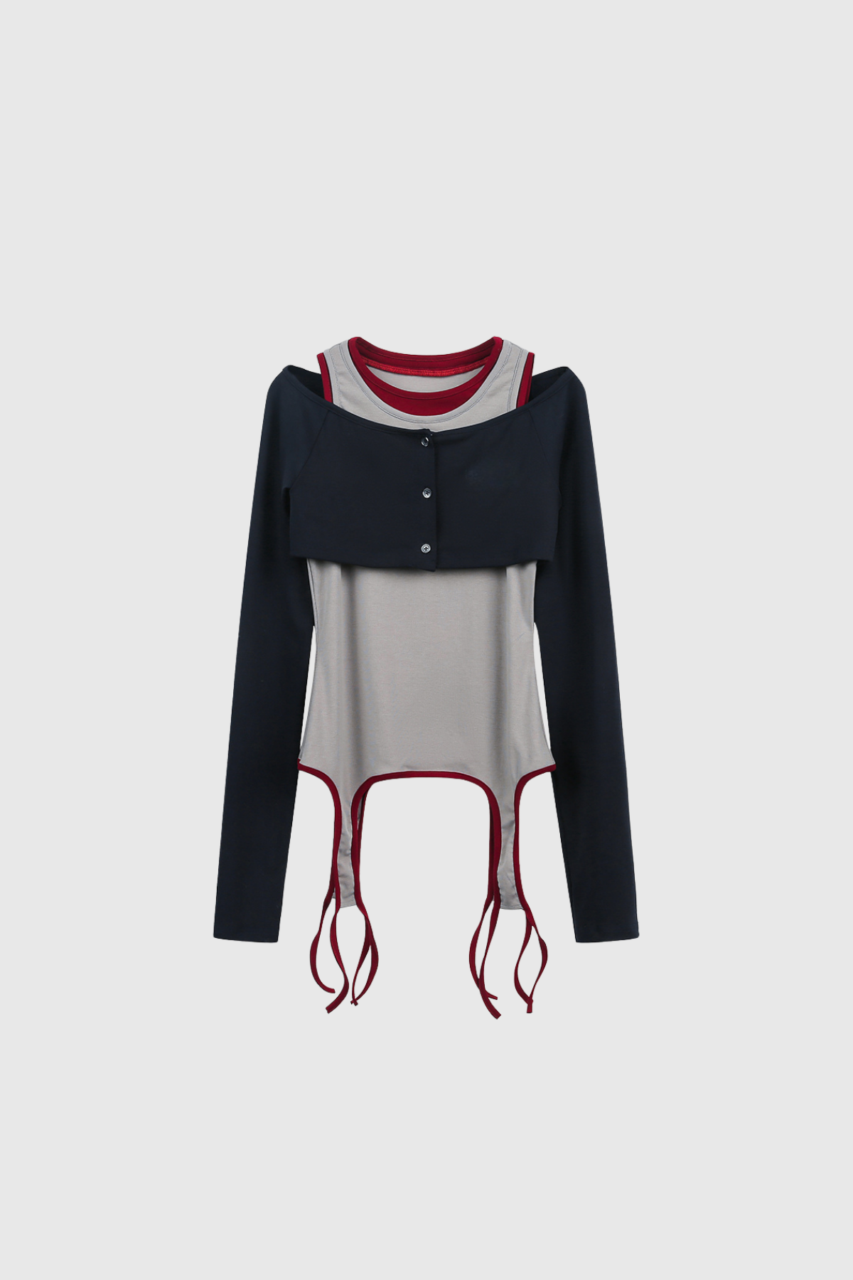The Fanni Two Piece Deconstruct Top in Grey exemplifies contemporary design through its innovative layering approach. This deconstructed silhouette features strategically separated panels that create visual depth and movement, offering a sophisticated alternative to conventional tops. The grey colorway provides versatile styling potential, seamlessly transitioning from casual daywear to elevated evening looks. The two-piece construction allows for individual styling flexibility, enabling you to mix, layer, or wear components separately. Crafted with attention to architectural detail, this piece appeals to those seeking distinctive, fashion-forward pieces that challenge traditional garment construction while maintaining wearability and comfort.