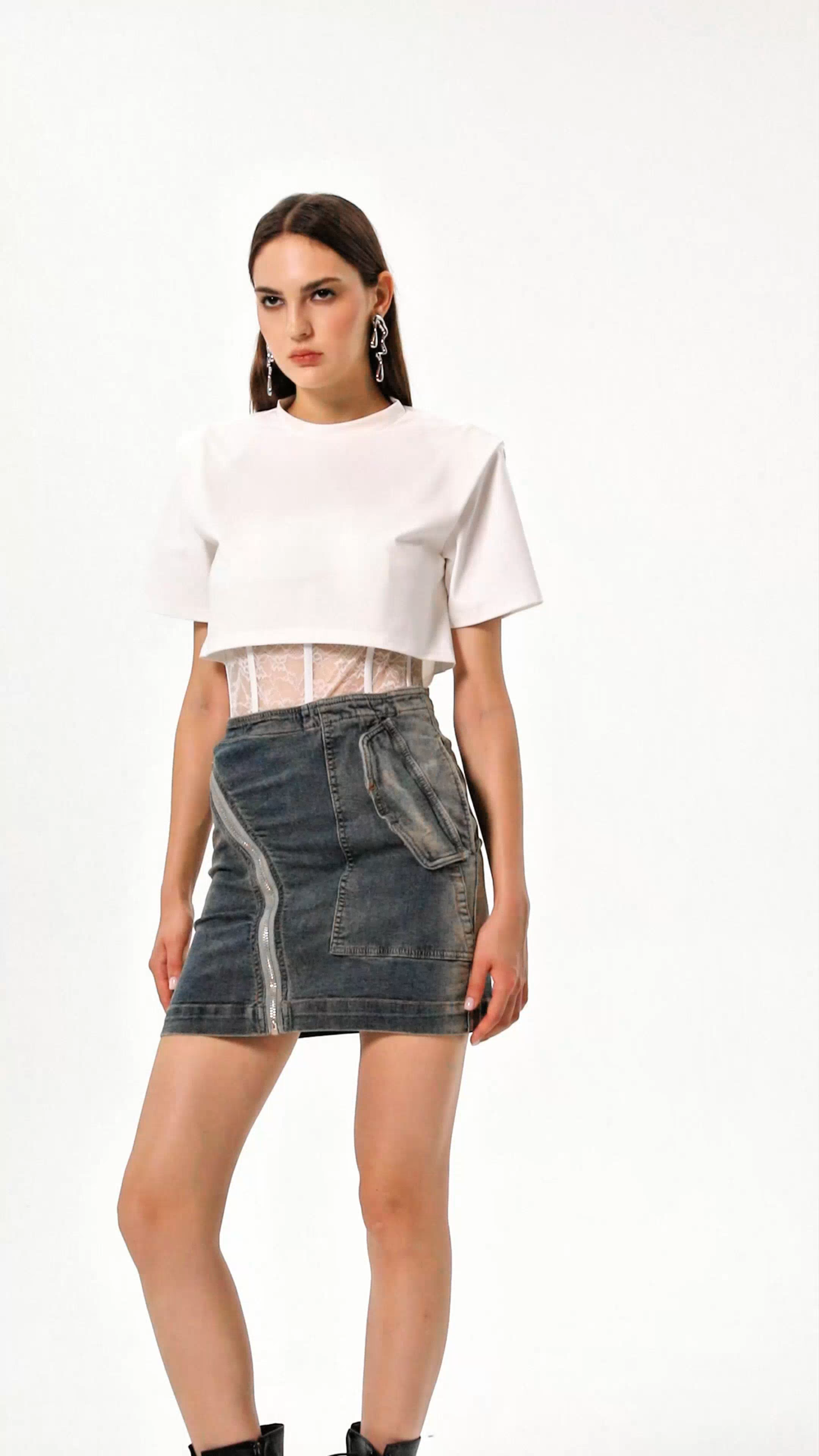 Introducing the Hanna Zipper Denim Mini Skirt. Made from high-quality denim fabric, this skirt features a unique zipper design, providing a modern and edgy look. Its versatile style makes it perfect for any occasion.