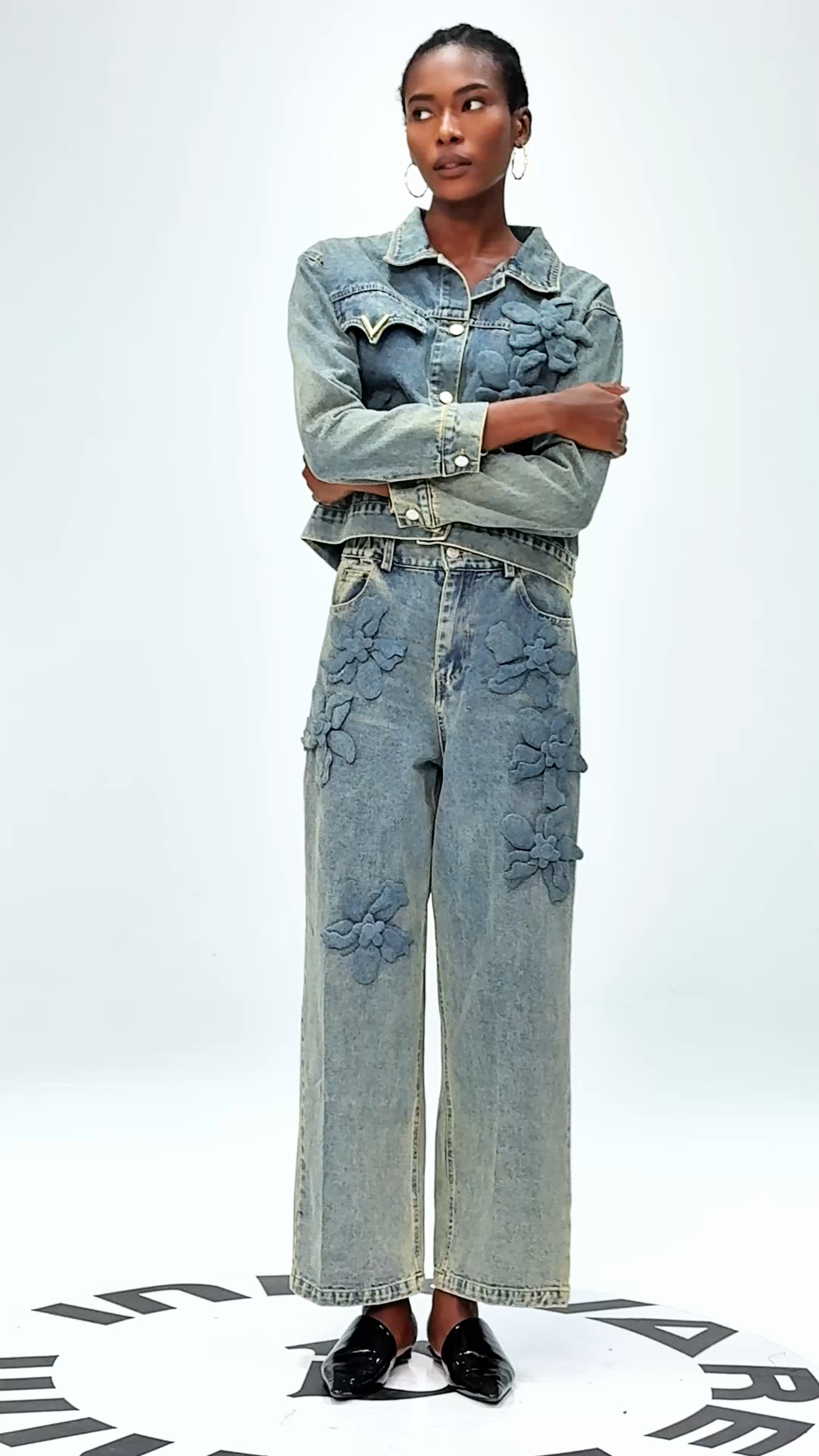 Experience the perfect blend of comfort and style with the Aparawa Flower Denim Pants Set. With its unique floral design and high-quality denim material, this set offers both durability and fashion-forward style. Elevate your wardrobe with this versatile and trendy addition.