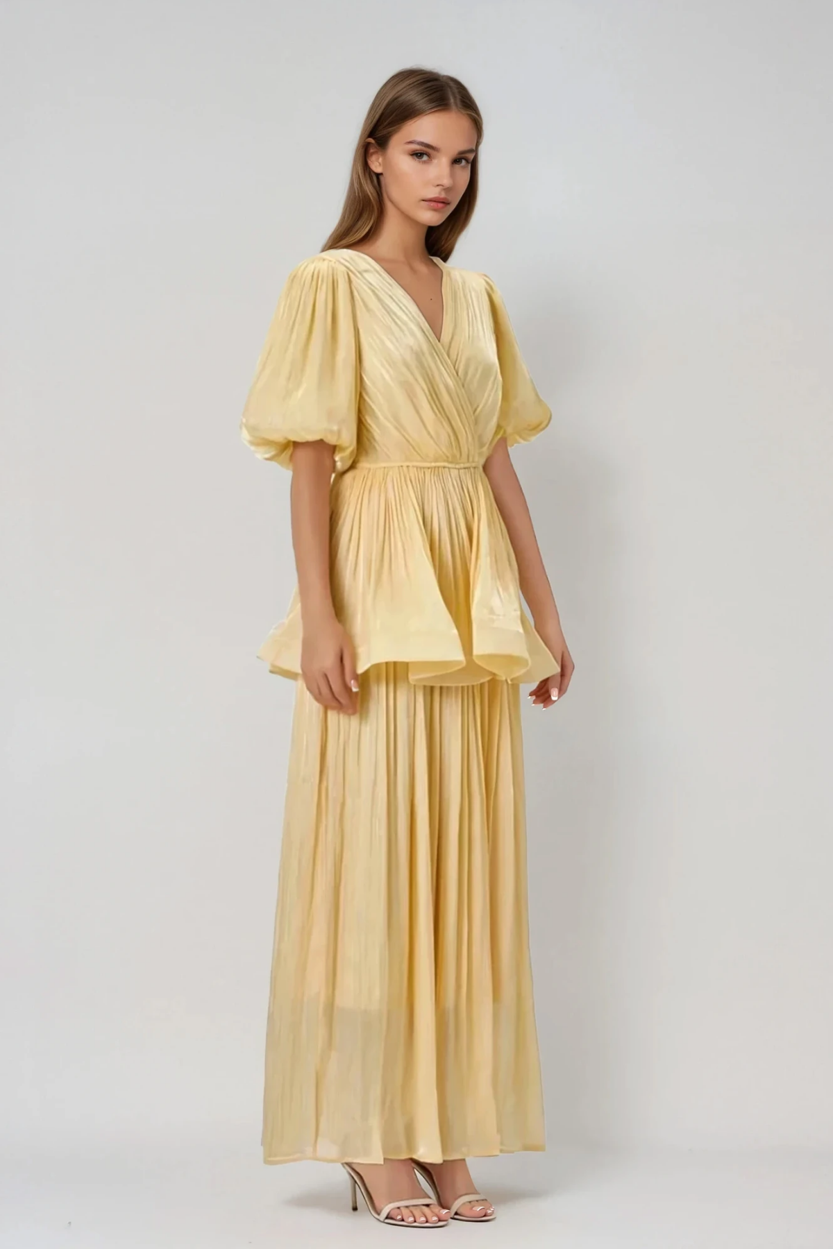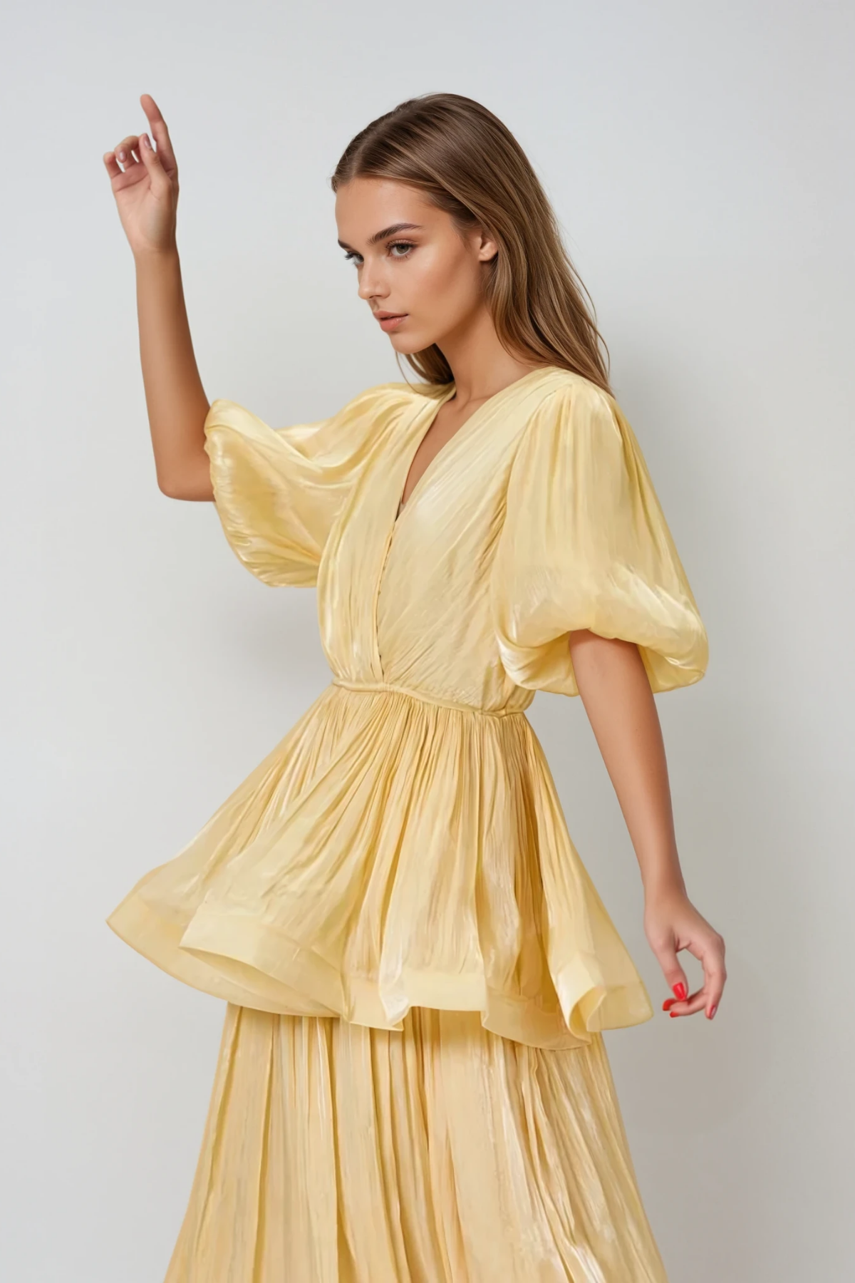 Elevate your wardrobe with this sophisticated two-piece ensemble featuring dramatic balloon sleeves and a flattering ruched silhouette. The voluminous sleeve design creates an eye-catching statement while the coordinated skirt offers refined elegance. Crafted with attention to detail, this set delivers contemporary style with timeless appeal, perfect for elevated casual occasions or polished evening wear. The balanced proportions between the structured sleeves and fitted skirt create a flattering, fashion-forward look.