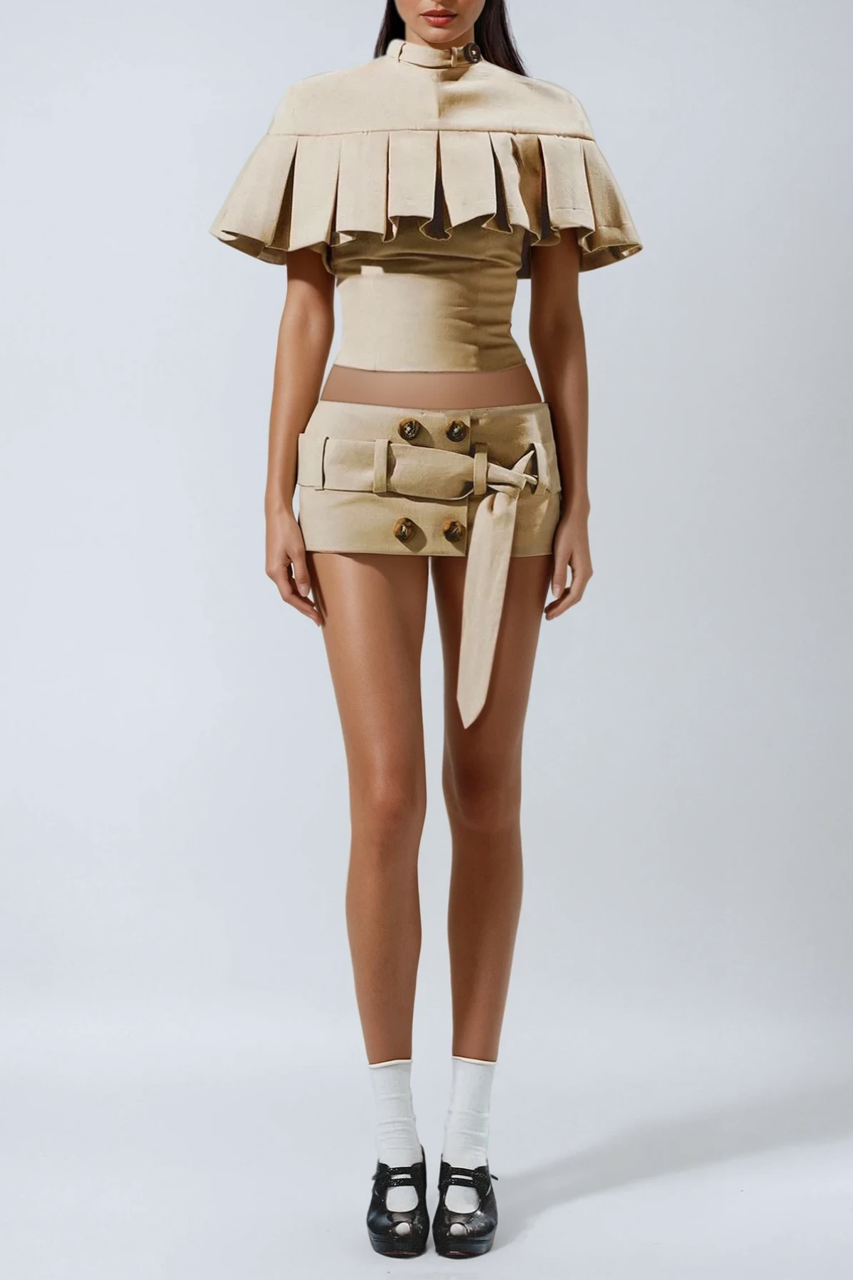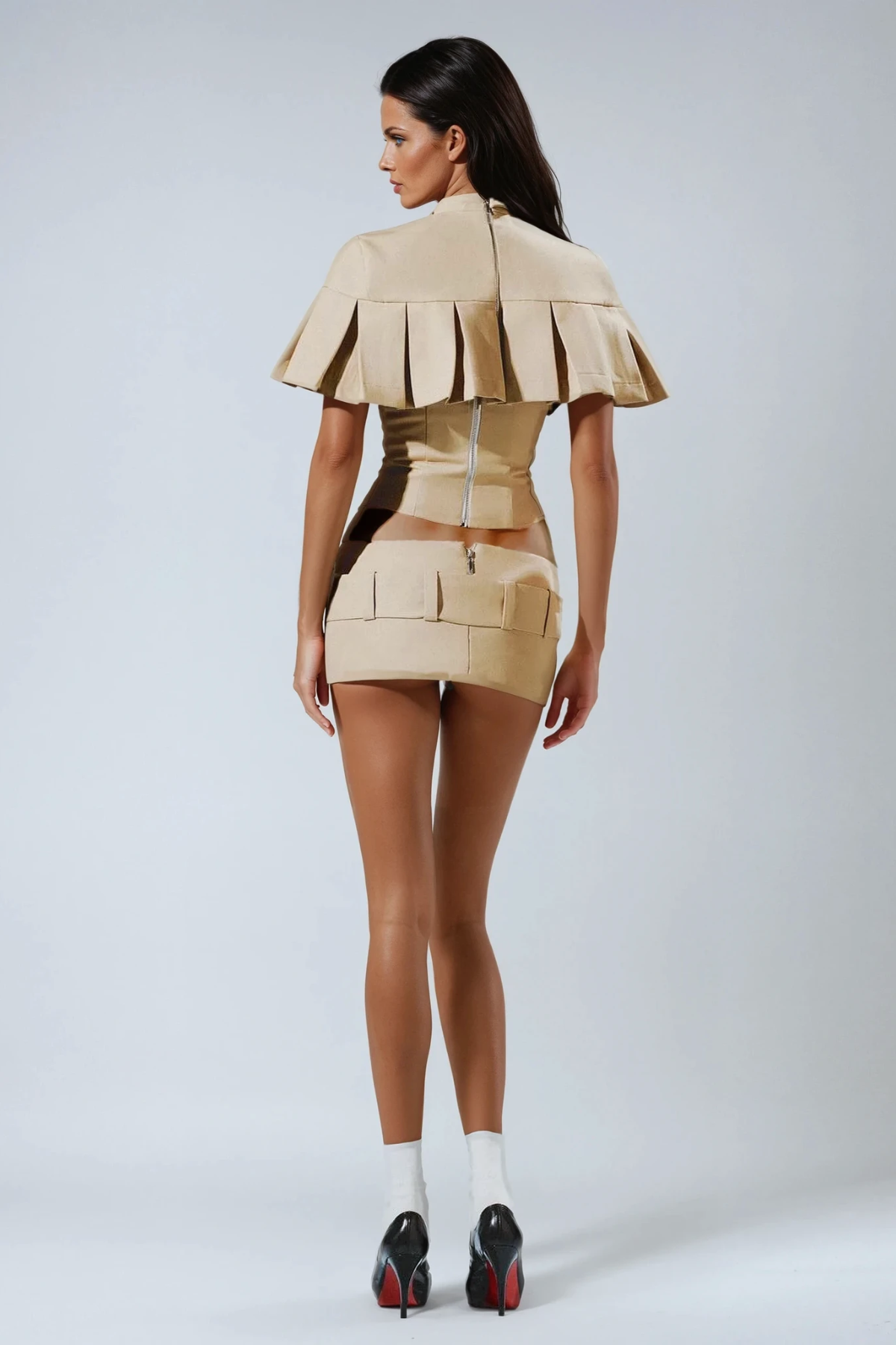 Deo Bodycon Ruffle Shawl Skirt Set