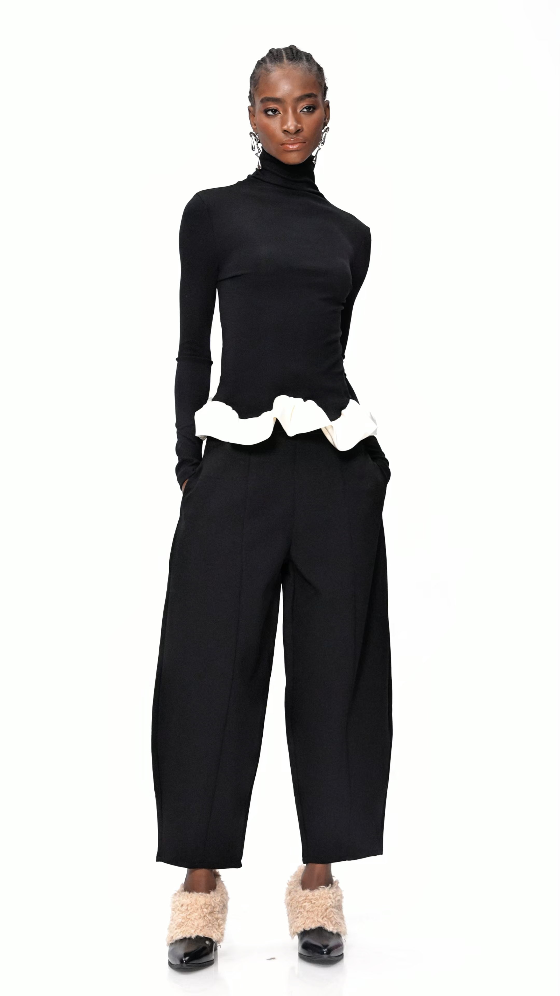 Elevate your wardrobe with the Enock Colorblock Ruffle Pants Set, designed for both comfort and style. Featuring bold colorblocked patterns and delicate ruffle accents, this set offers a modern, sophisticated look perfect for versatile occasions.