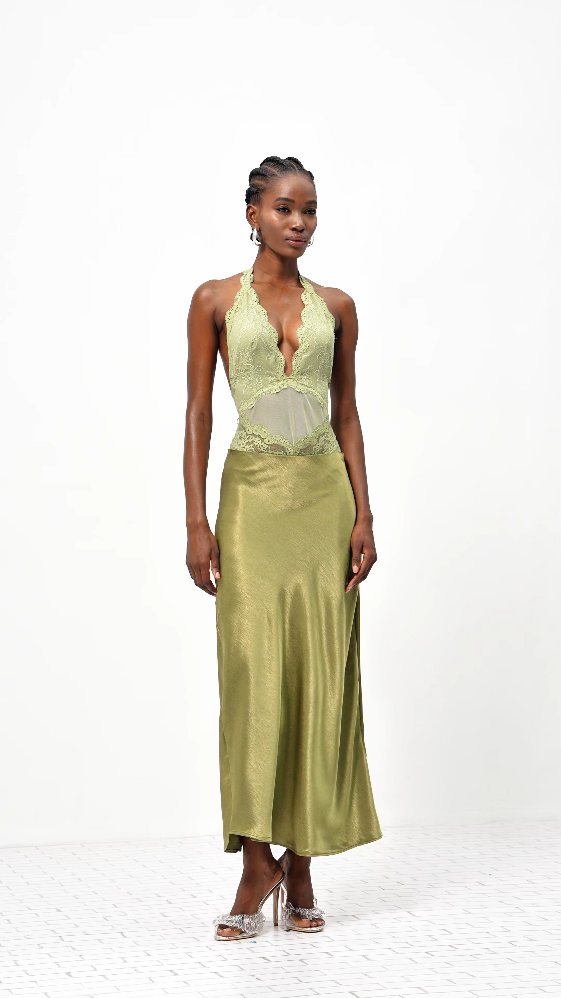 The Ermolai Halter Neck Lace Bodysuit exudes sophistication with its elegant halter neckline and intricate lace detailing. Designed for comfort and style, this versatile piece elevates any wardrobe, perfect for both casual and special occasions.