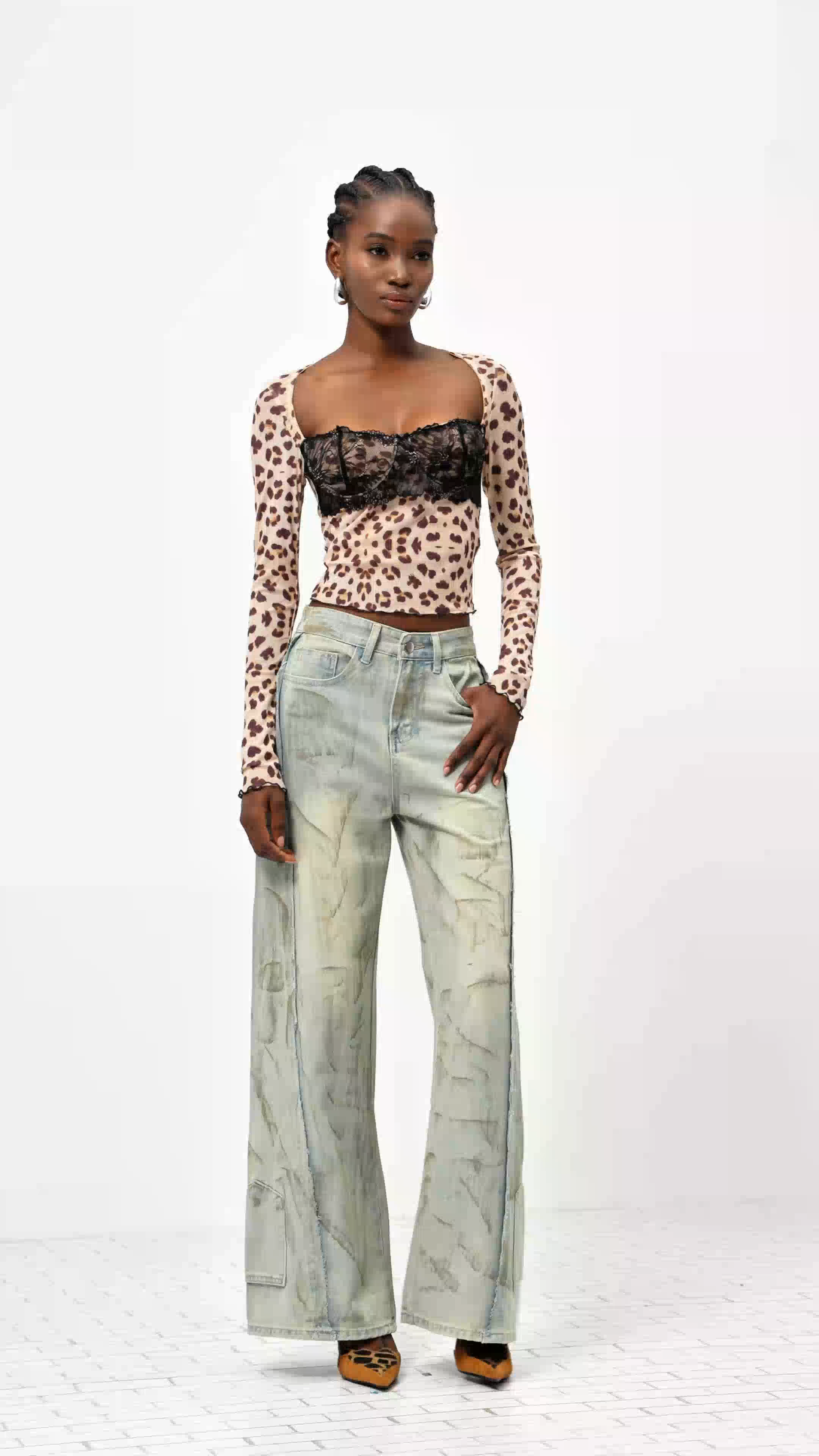 The Erna Lace Leopard Top features a striking leopard print accented with delicate lace detailing. Crafted from premium materials for comfort and style, this versatile piece elevates both casual and dressy outfits with effortless sophistication.