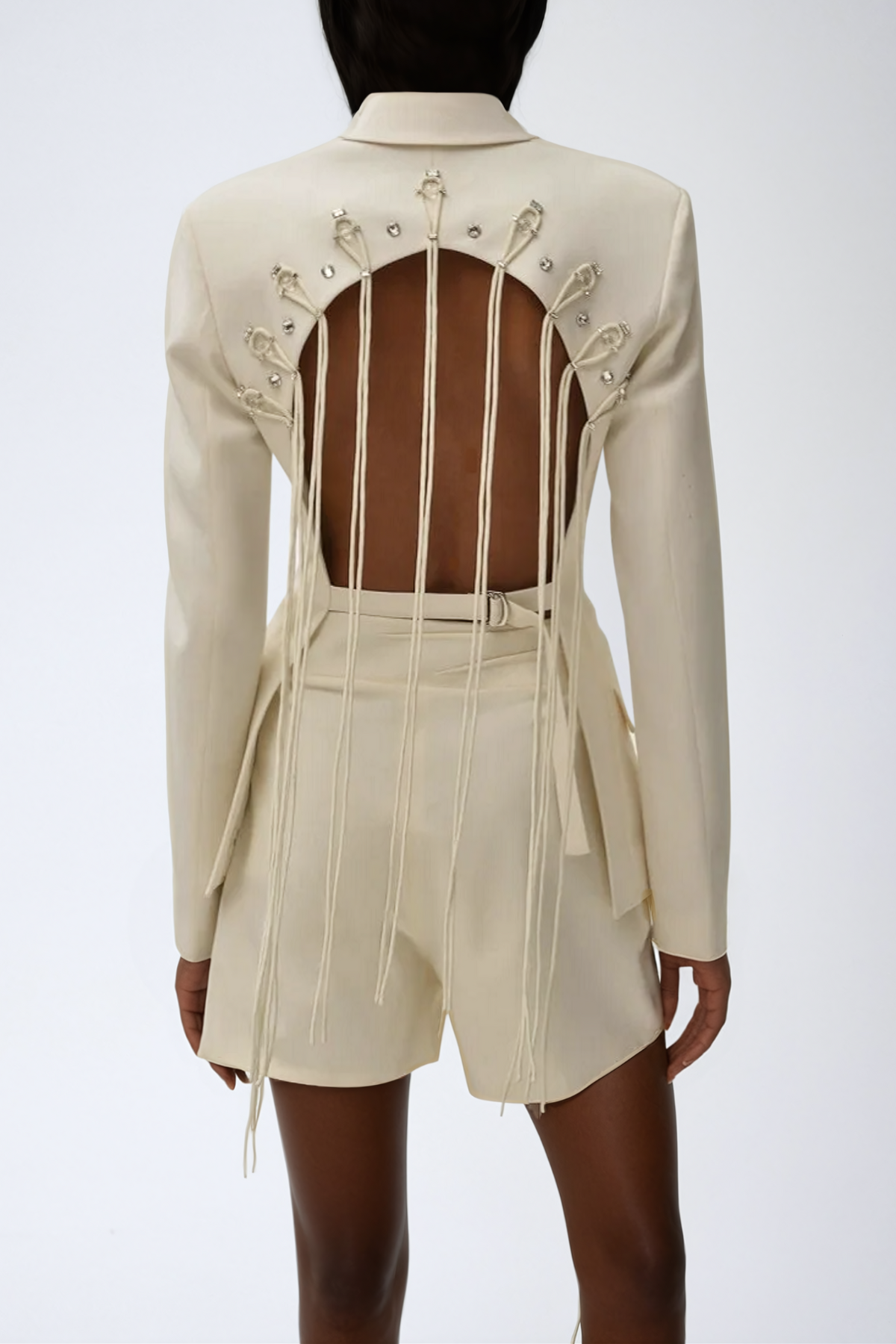 Vienna Cutout Fringe Backless Blazer In Apricot