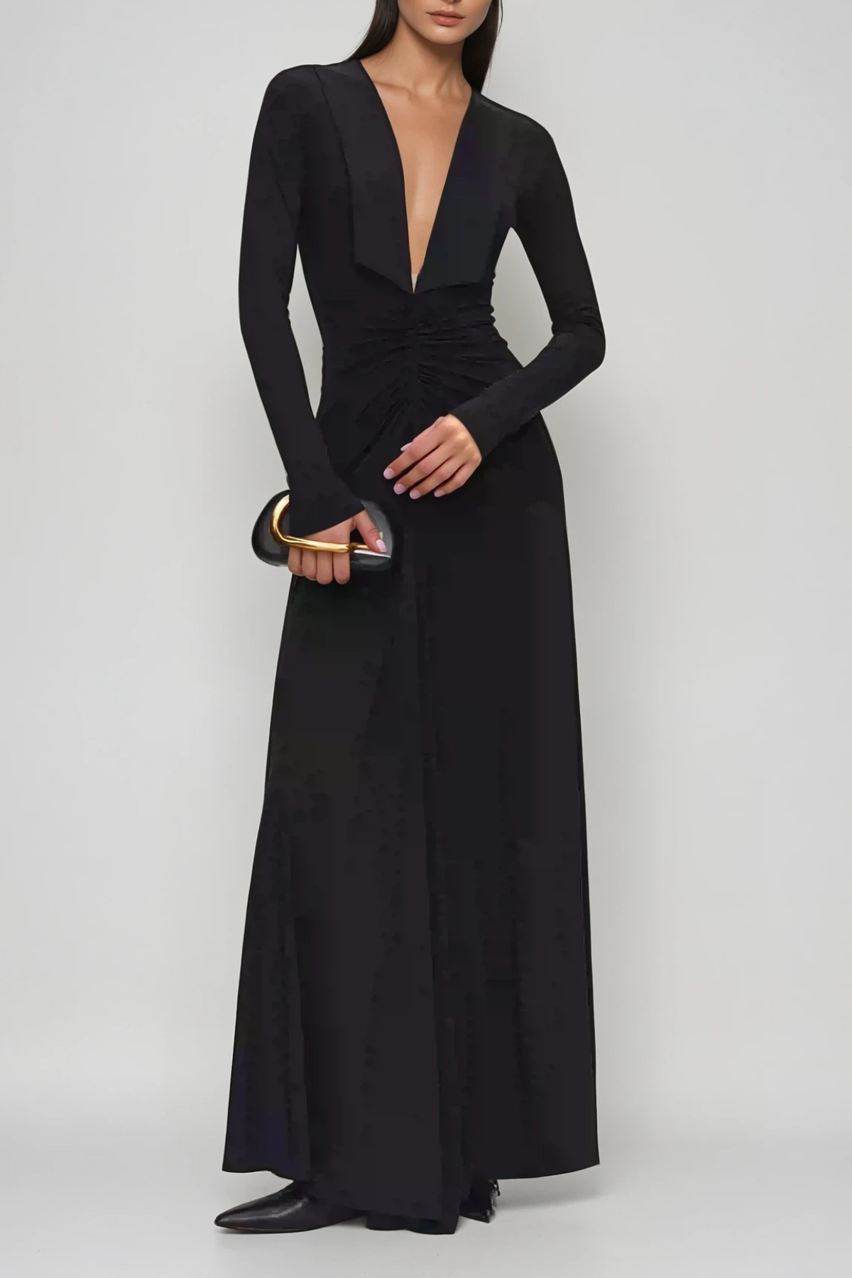 Durans Plunge Ruch Maxi Dress