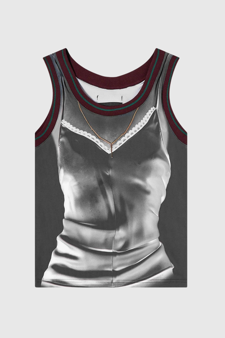Expertly designed with an imaginative illusion print, the Analia Sleeveless Top is a sophisticated addition to any wardrobe. The unique design offers a touch of whimsy, while the sleeveless style adds versatility for any occasion. Elevate your look with this must-have top.
