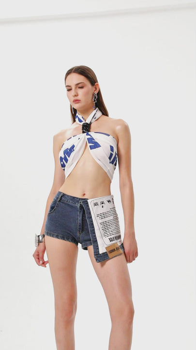The Chedomir Halter Neck Print Crop Top in White offers a contemporary silhouette with its halter neckline, providing both support and style. Crafted for a flattering fit, this crop top features a striking printed design that enhances visual interest and complements a variety of outfits. Ideal for layering or wearing alone, it combines comfort with a modern edge, making it a versatile piece for elevated casual wear.