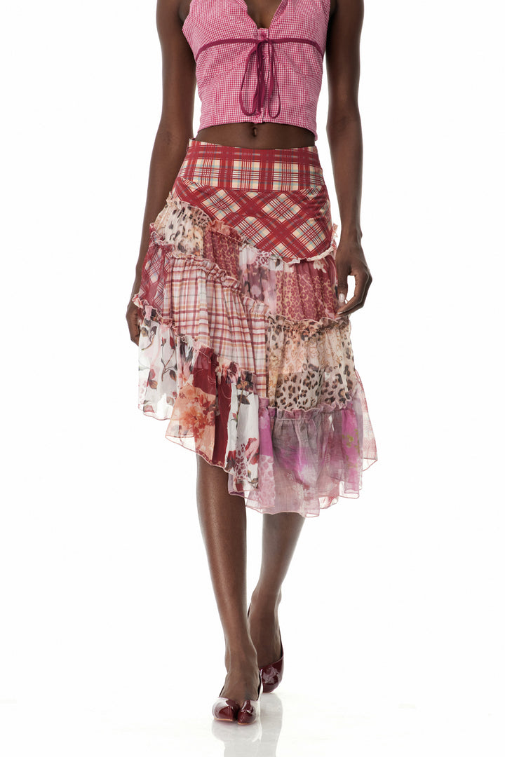 Clemency Asymmetric Patchwork Maxi Skirt