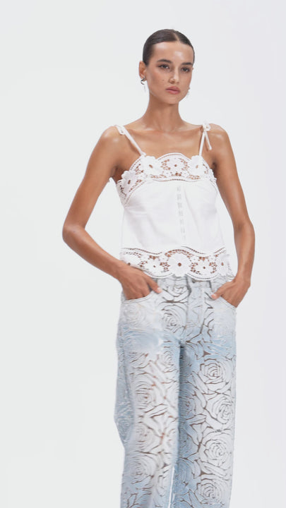 Elevate your wardrobe with the Daichi Spaghetti Lace Top, featuring delicate lace detailing that adds refined texture and elegance. The slender spaghetti straps provide a minimalist silhouette, perfect for layering or wearing alone in warm weather. Crafted to balance comfort with sophisticated style, this top is ideal for both casual outings and dressed-up occasions.