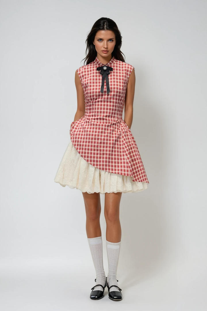 Danette Sleeveless Grid Deconstruct Mini Dress