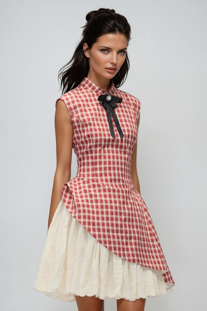Danette Sleeveless Grid Deconstruct Mini Dress This architectural mini dress reimagines classic grid patterning through strategic deconstruction. The sleeveless silhouette offers clean lines, while the deconstructed grid detailing creates visual interest and dimension. Crafted for those who appreciate avant-garde design with wearable sophistication, this piece transitions effortlessly from day to evening. The mini length provides a contemporary edge, making it an essential addition to any fashion-forward wardrobe.