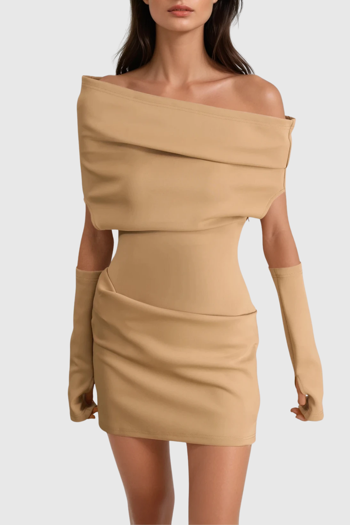 Degataga Off Shoulder Bodycon Ruch Mini Dress