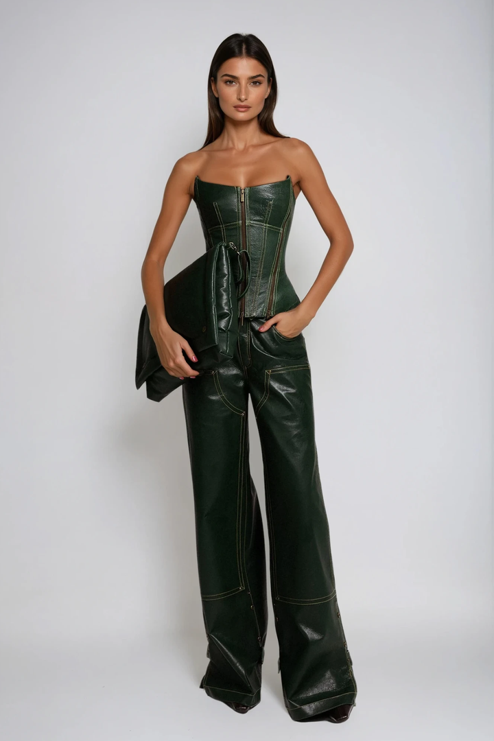 Elevate your wardrobe with the Demokritos Corset Leather Pants Set, crafted for a commanding and sophisticated silhouette. This expertly tailored ensemble features a sleek leather corset top designed to contour and enhance your figure, paired seamlessly with matching leather pants that offer both structure and flexibility. Ideal for those seeking a bold yet refined look, this set combines premium materials with precise craftsmanship to deliver lasting style and confidence. Perfect for statement-making occasions, it balances edgy fashion with expert design principles.